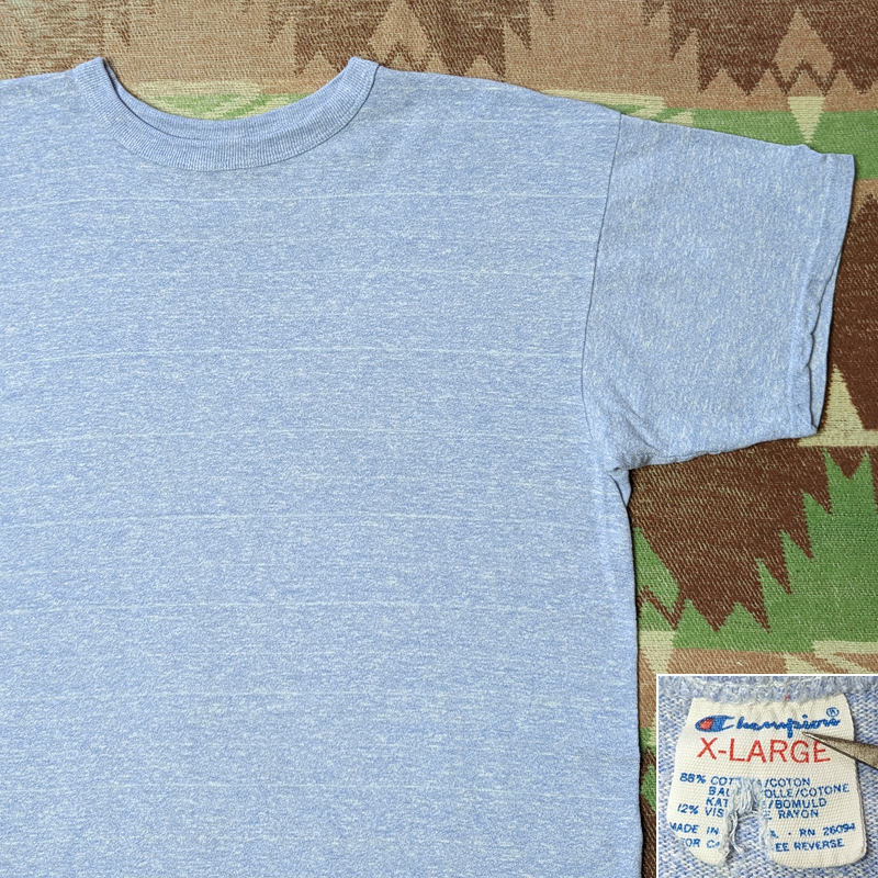 1980s~ Champion 88/12 Blue Heather Plain T-Shirt Unusual Stripe