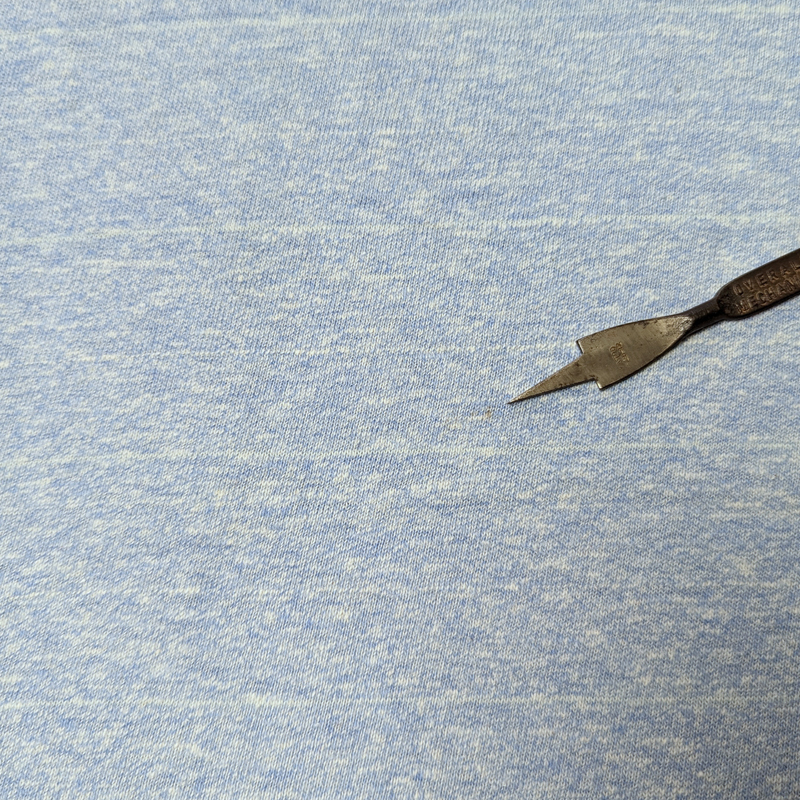 胸元やお腹に薄いシミはありましたが、目立たず気にせず着られる程度と思います。この生地ならではの多少の毛玉っぽさは感じますが、ノーダメージの良好なコンディションです。