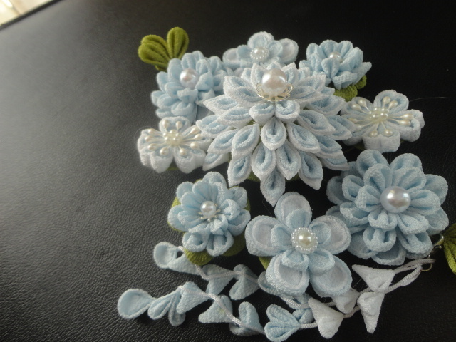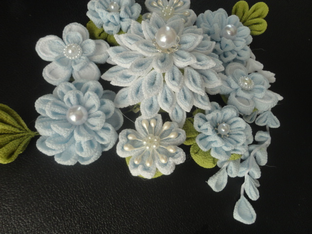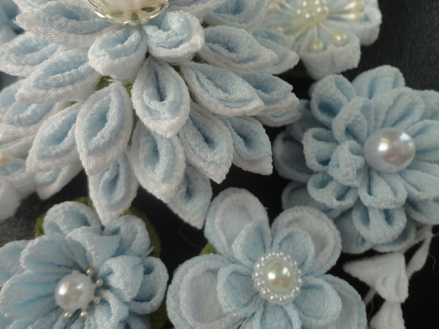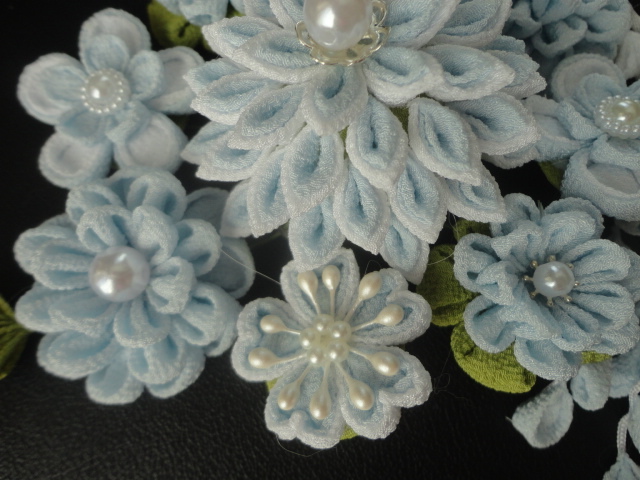 ★otowa★花かんざし★バレッタ★薄藍色★ブルー系★★式★入園★入学★卒園★卒業★和装★着物★袴★つまみ細工★ショートカット★RRB003