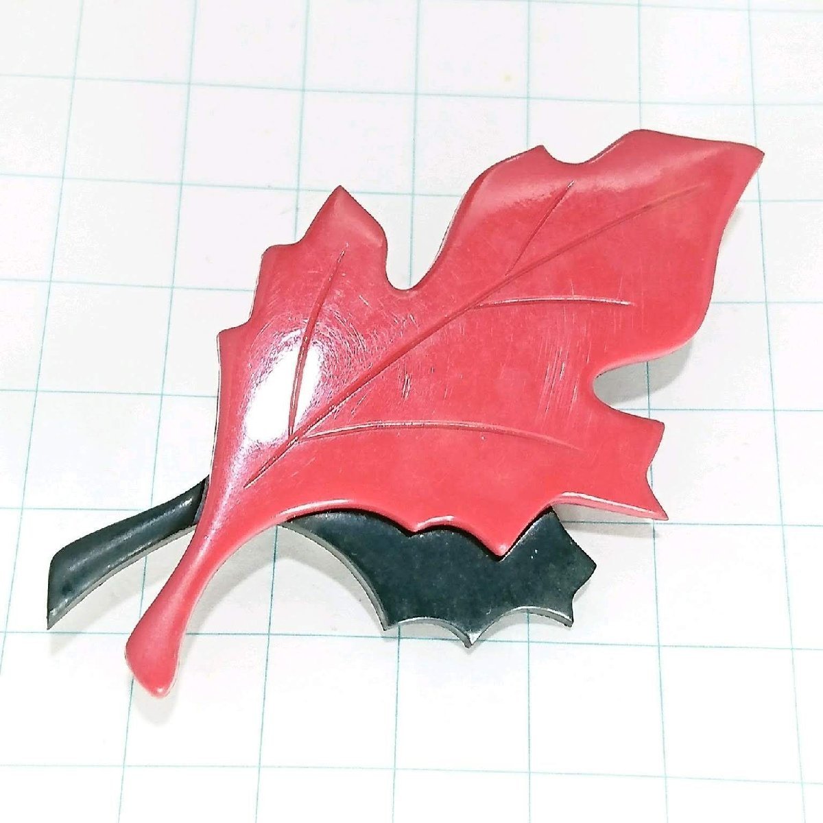 送料無料)ビンテージ☆赤黒 葉っぱモチーフ☆アンティークブローチ A17740
