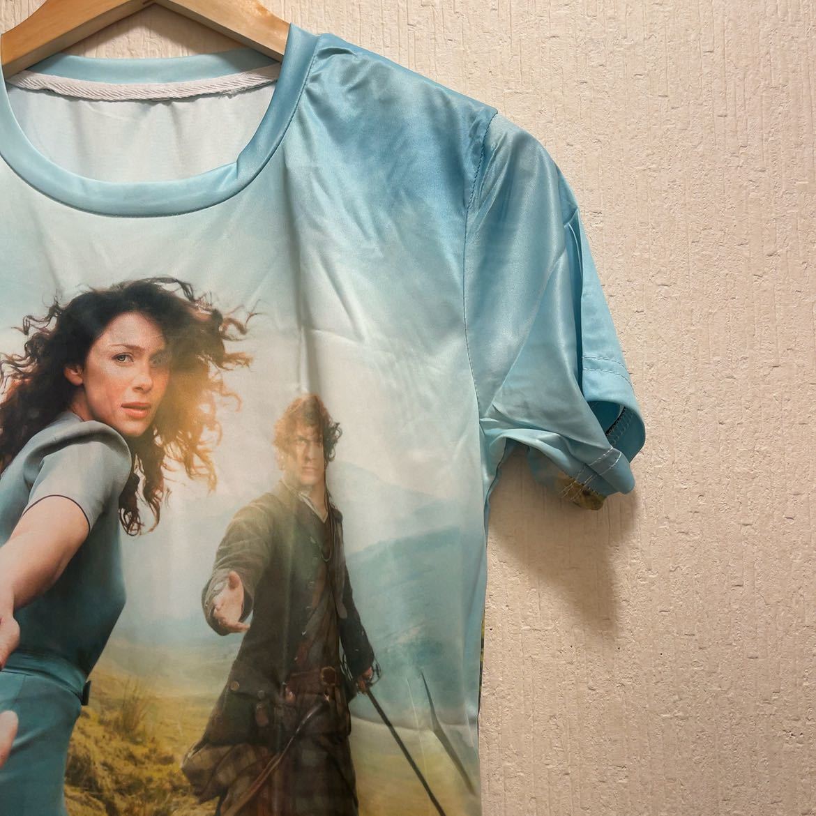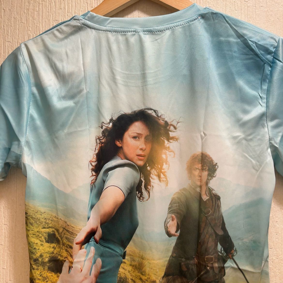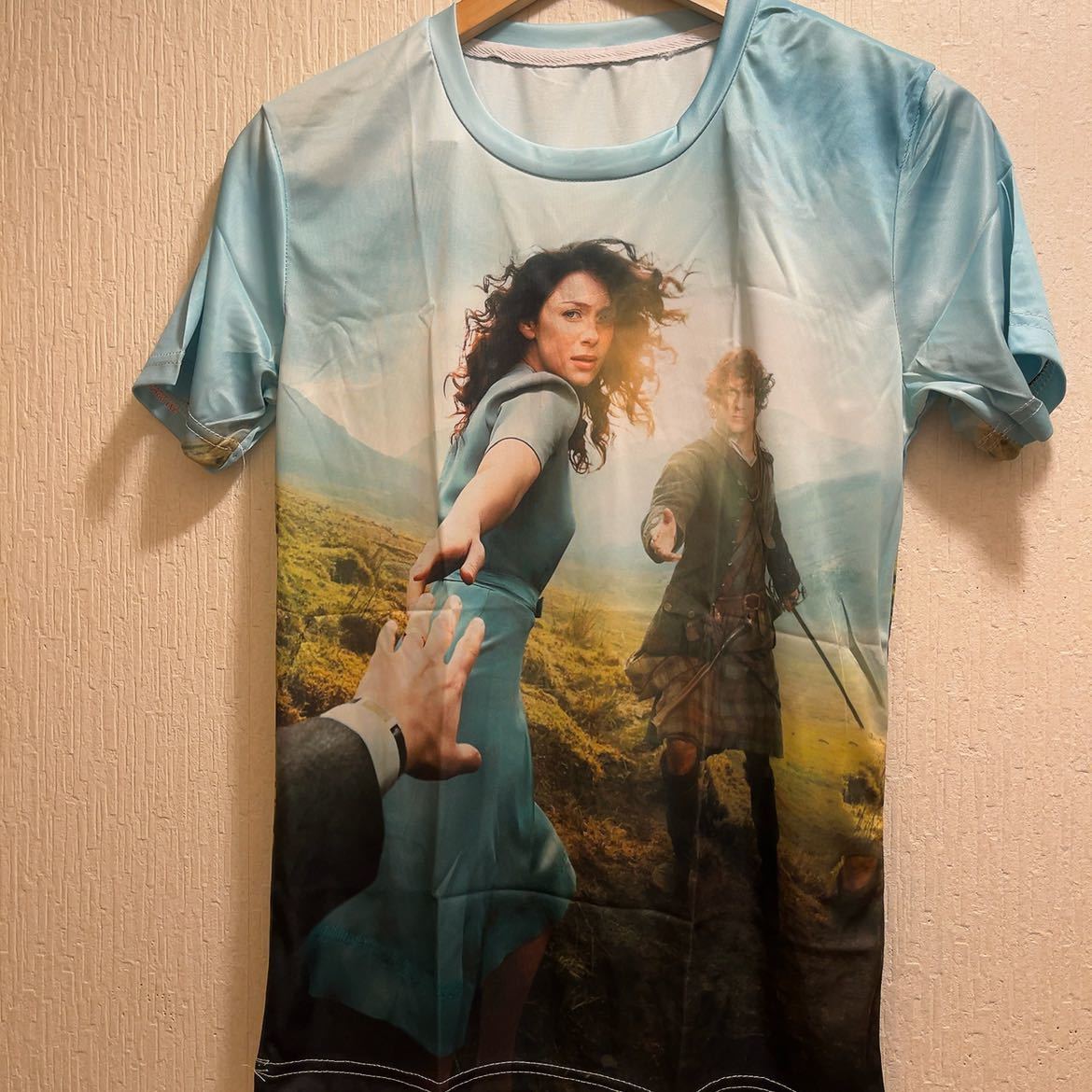 ★海外人気ドラマ、アウトライダーのシーズン1のTシャツです。クレア役のカトリーナバルフとジェイミー役、サムヒューアンのプリンされています。バックプリントあり。