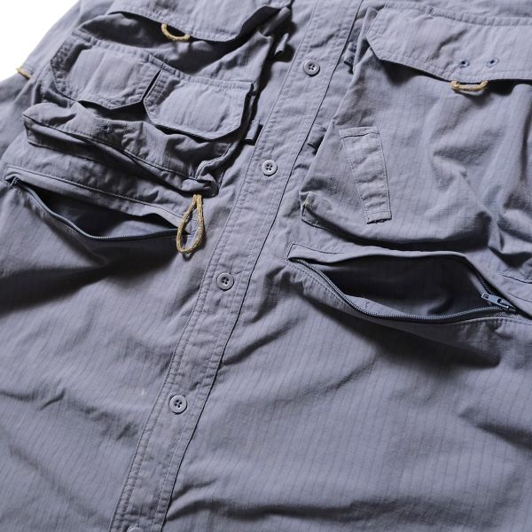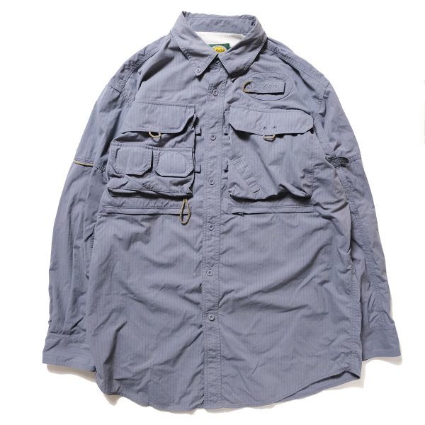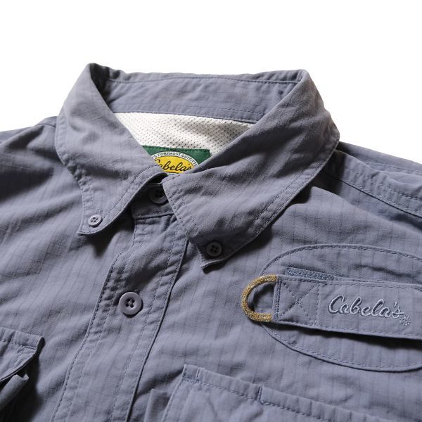 90's 00's カベラス Cabela's マルチポケット ナイロン フィッシングシャツ 長袖 (L) 紺灰 90年代 旧タグ オールド 多ポケット アウトドア