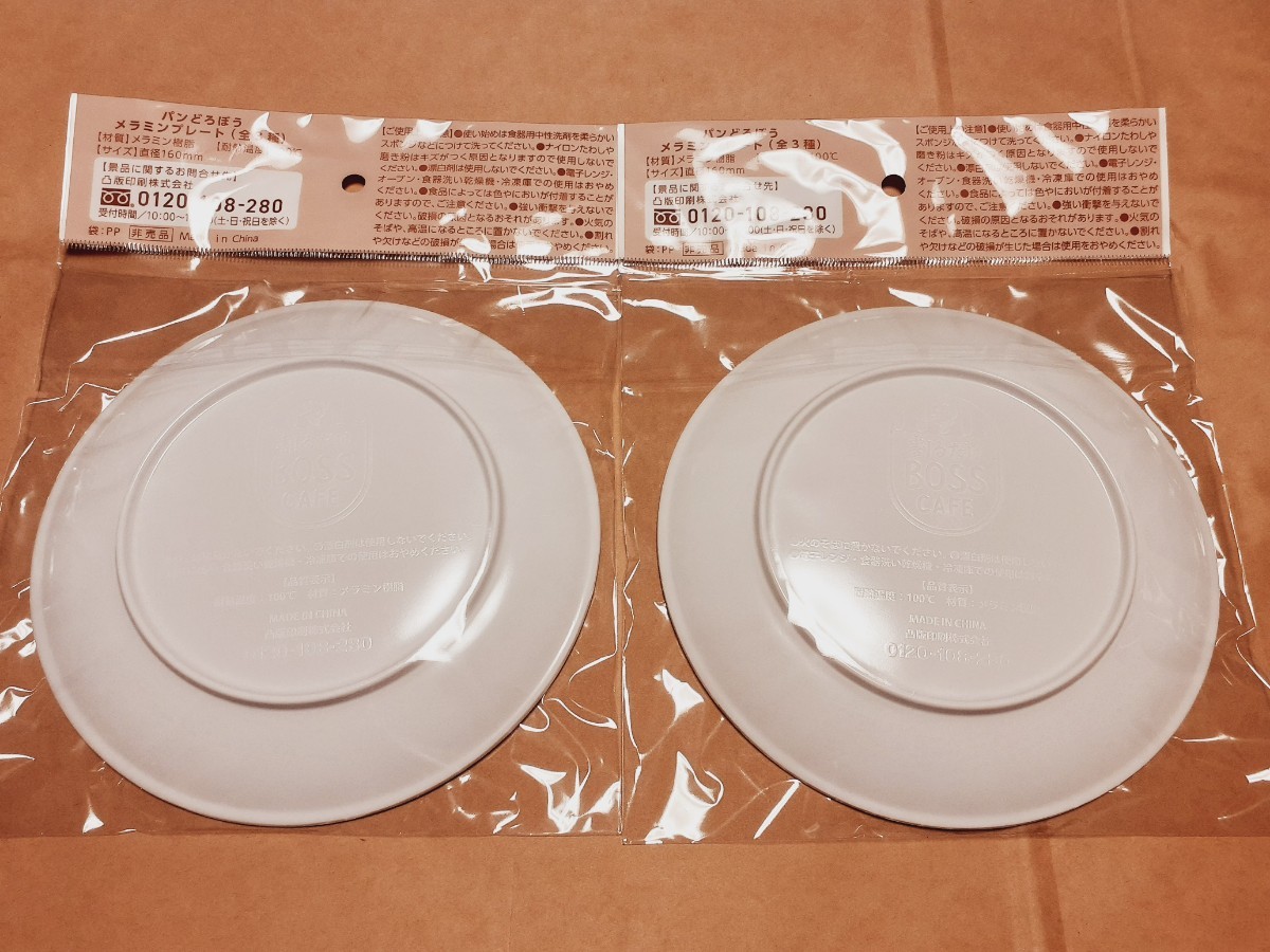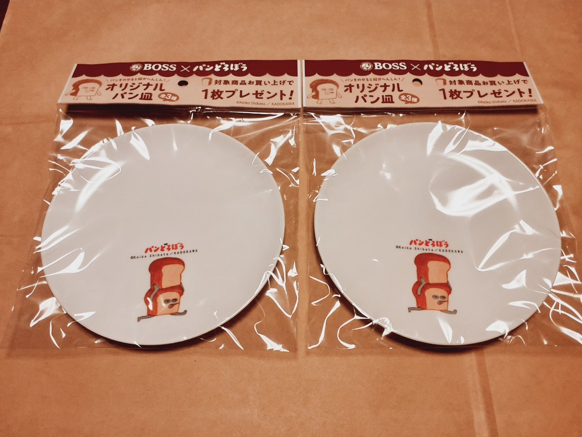 パンどろぼう x BOSSメラミンプレート オリジナルパン皿2枚のセットです。どちらも未開封です。よろしくお願いします。