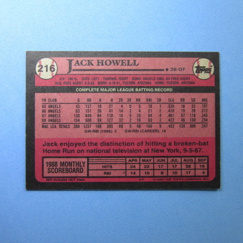 1989 Topps #216 Jack Howell(元・ヤクルト、巨人)