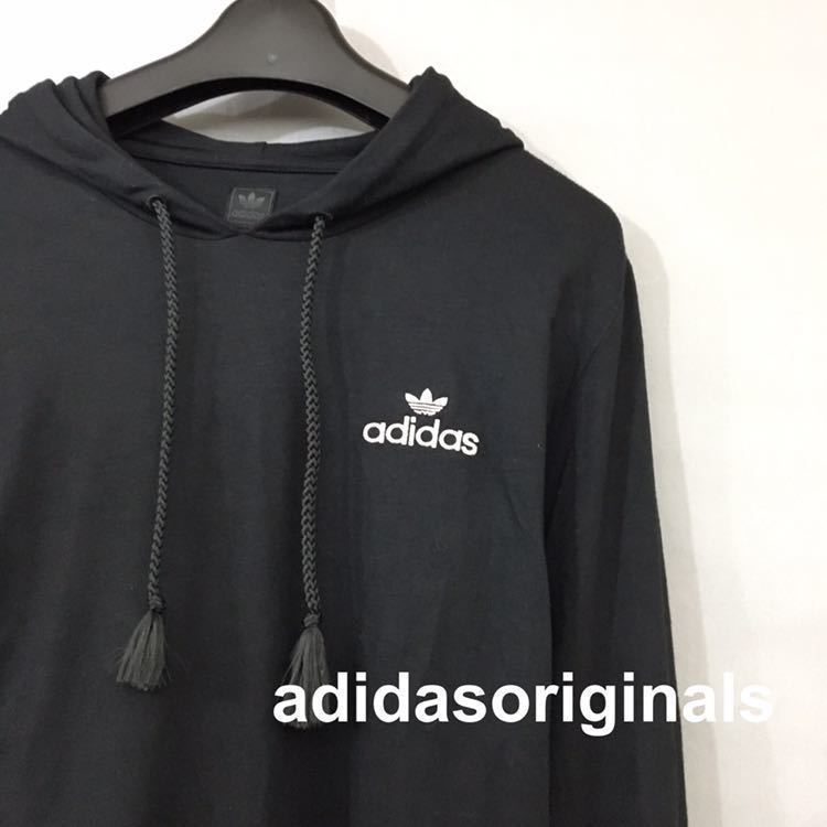 アディダス オリジナルス adidasoriginals トレフォイル ミツバ アディオリ プルオーバー フーディ 薄手 ブラック レディース Lサイズ ♭▽