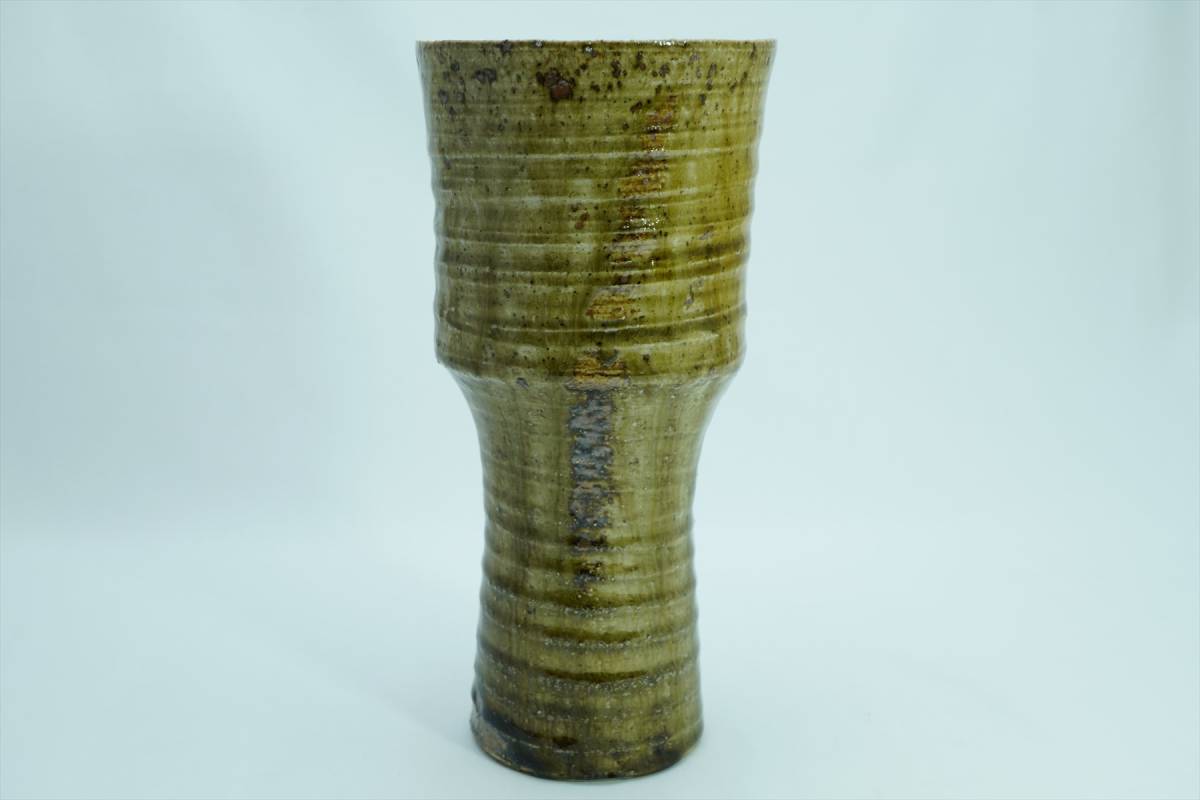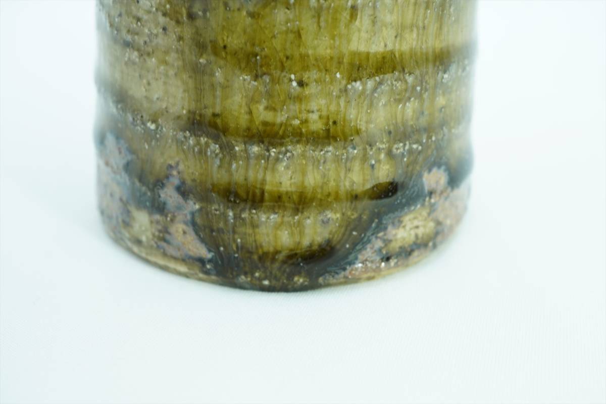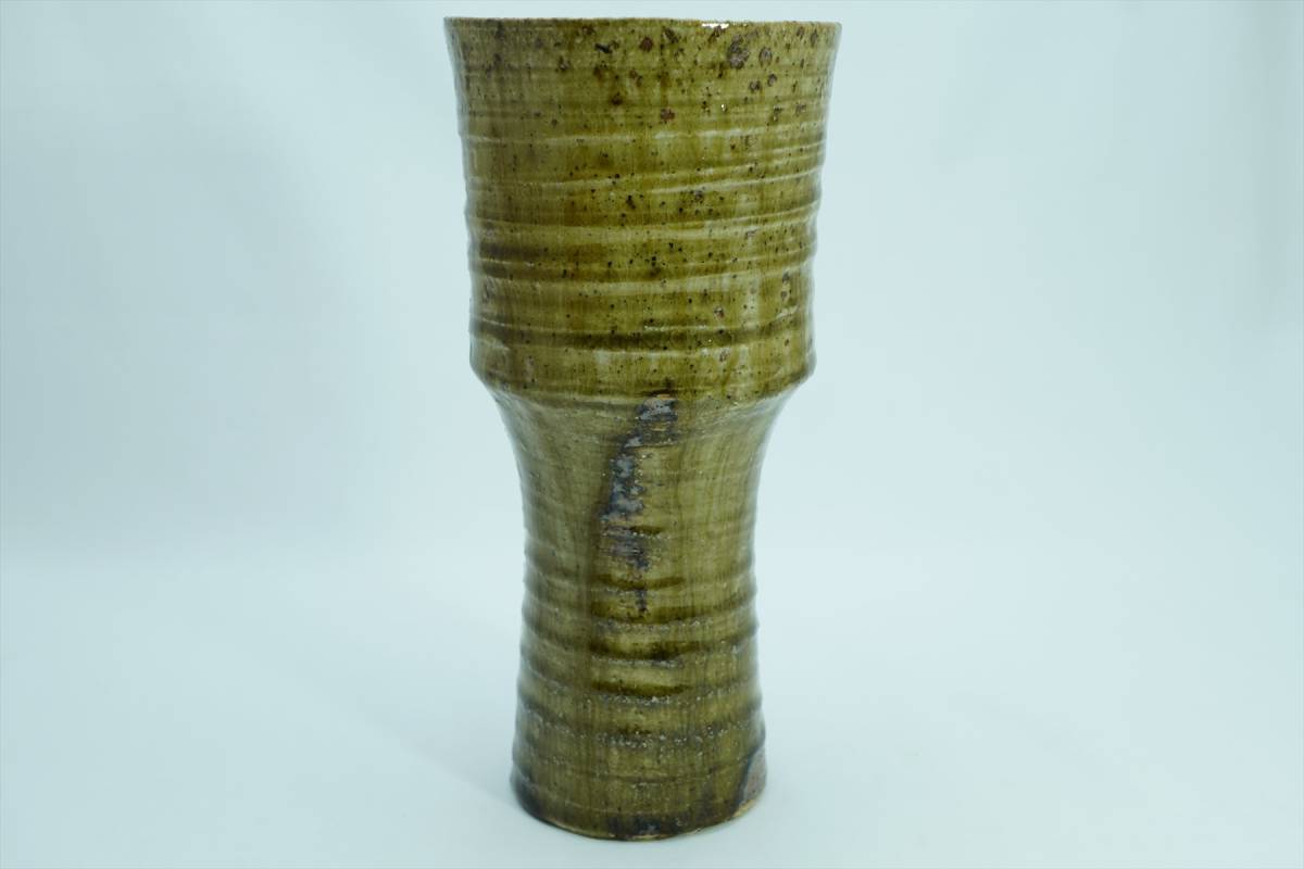 使用状況:50年以上前に祖父が購入して来た物です。加藤舜陶作の黄瀬戸花入です。名前は黄瀬戸ですが、還元反応で緑色に発色している様です。珍しい物だと思います。
