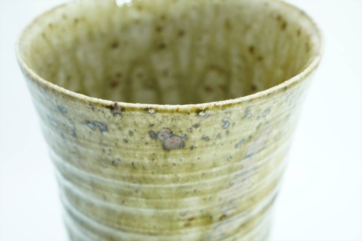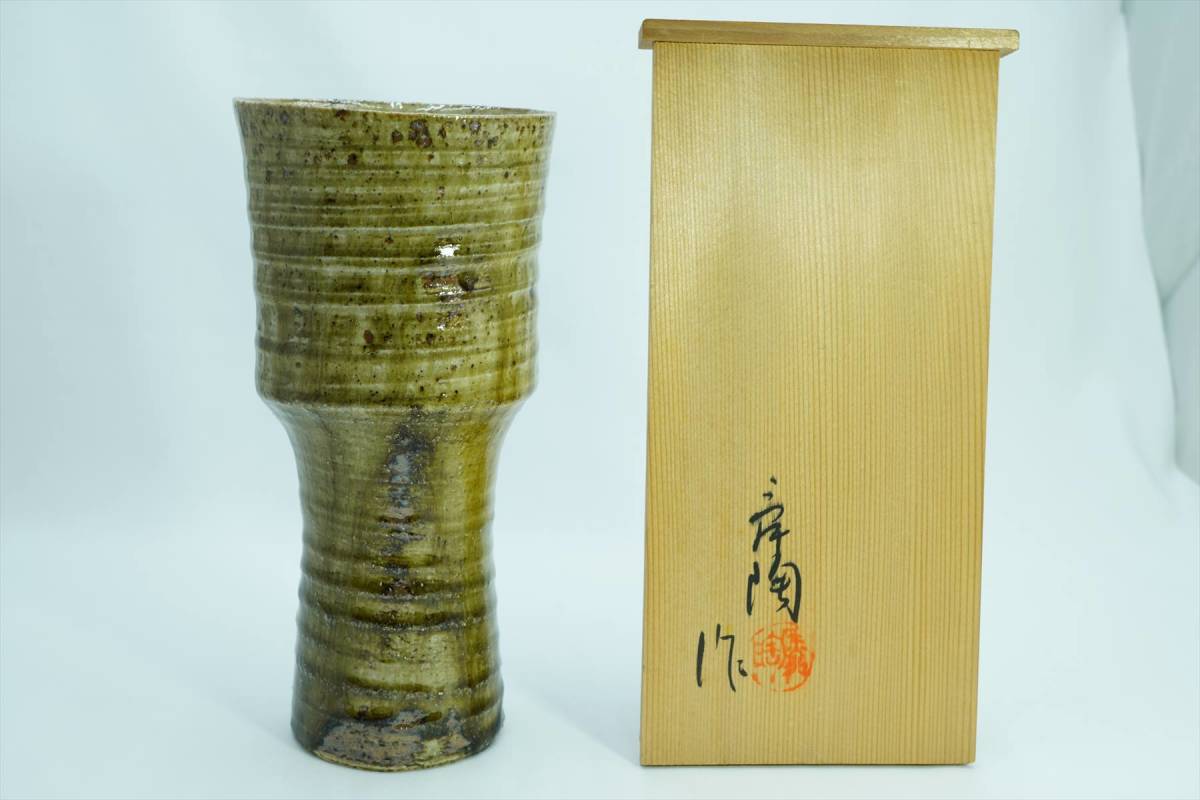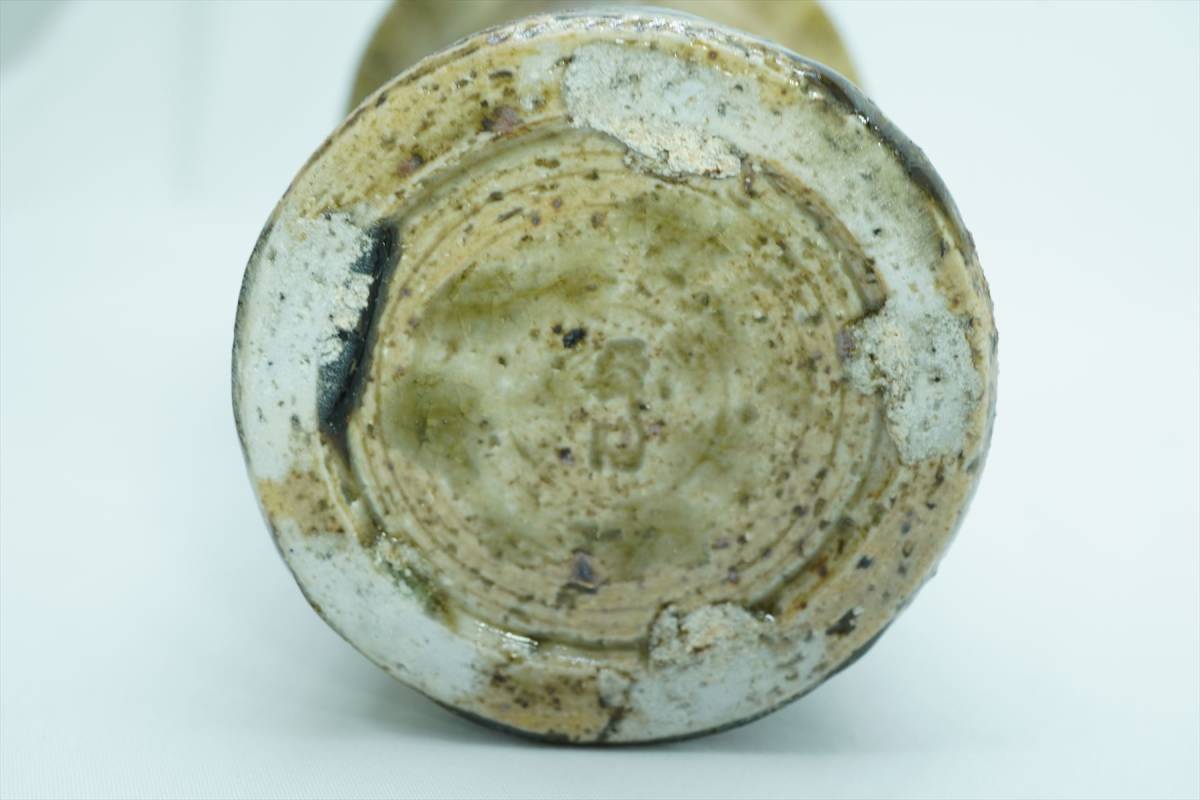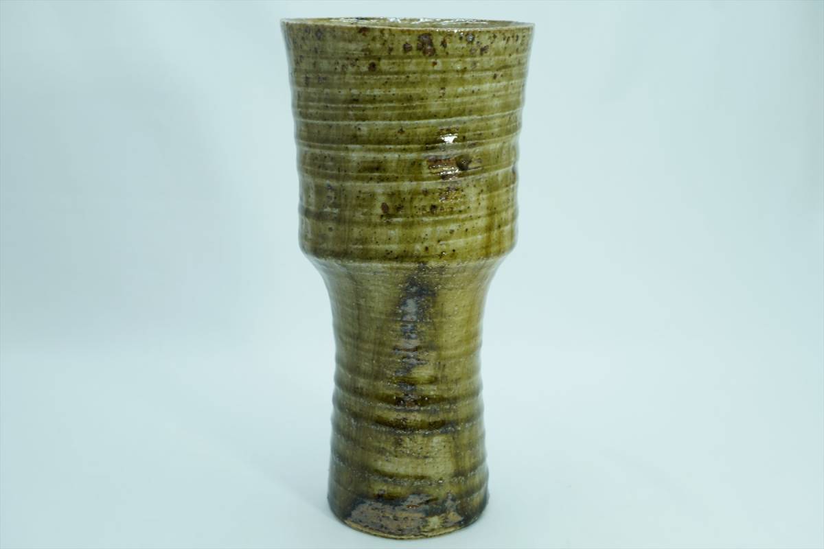 使用状況:50年以上前に祖父が購入して来た物です。加藤舜陶作の黄瀬戸花入です。名前は黄瀬戸ですが、還元反応で緑色に発色している様です。珍しい物だと思います。