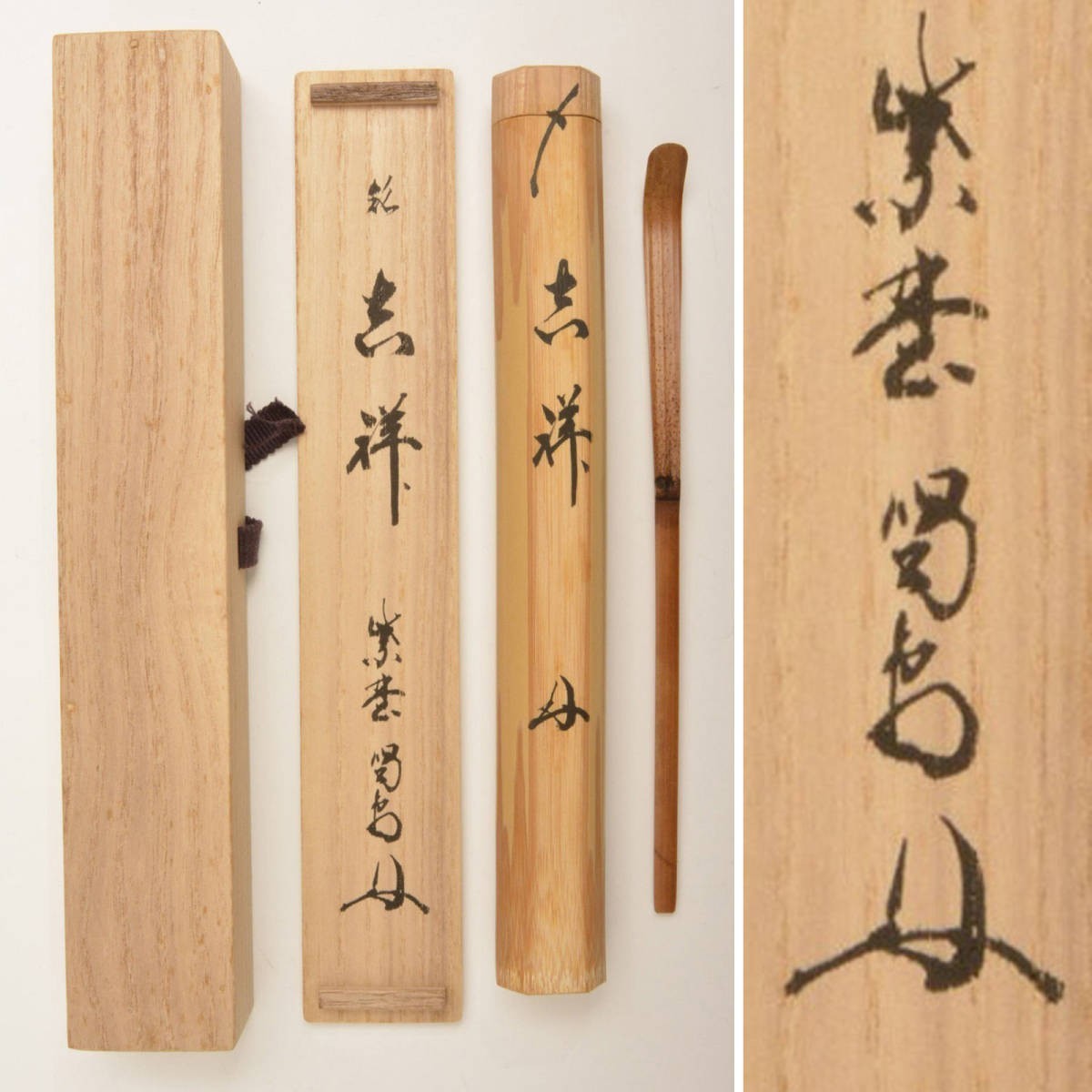 細合喝堂 茶杓は筒に小染み少々。他、全て良好。サイズは細合喝堂 銘 吉祥 茶杓をご参照下さい。