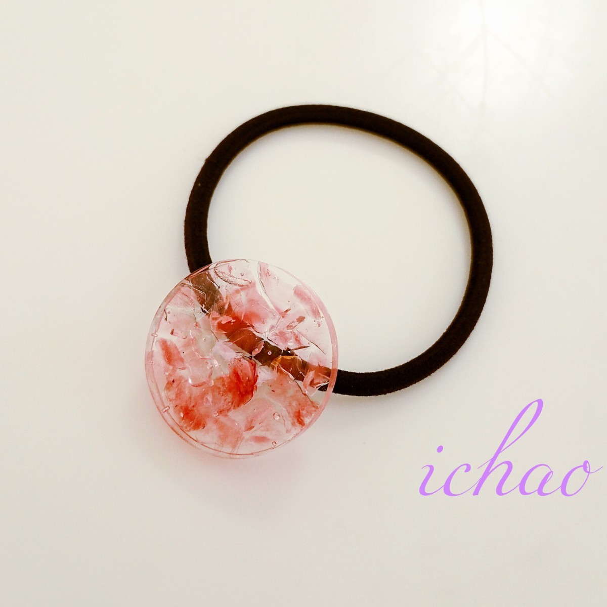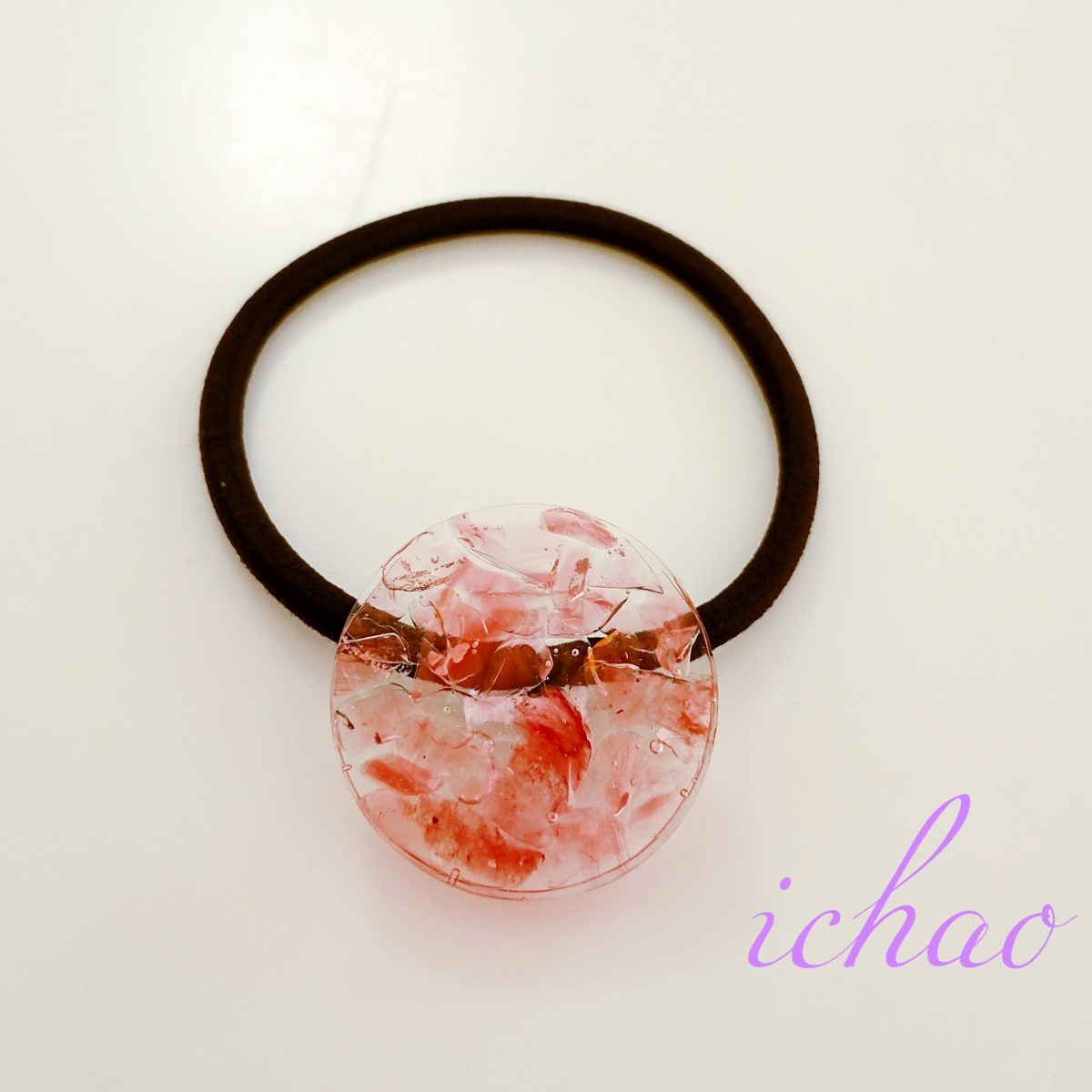 チェリークォーツをレジンで閉じ込めた大きめで可愛いヘアゴムです(^^)