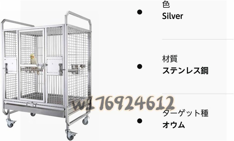 高品質 鳥かご・ケージ 豪華な大型オウムケージ、 中庭鳩繁殖ケージ、 正方形のステンレス鋼の鳥かご、 キャスター付き 56*49*90cm