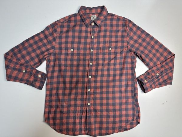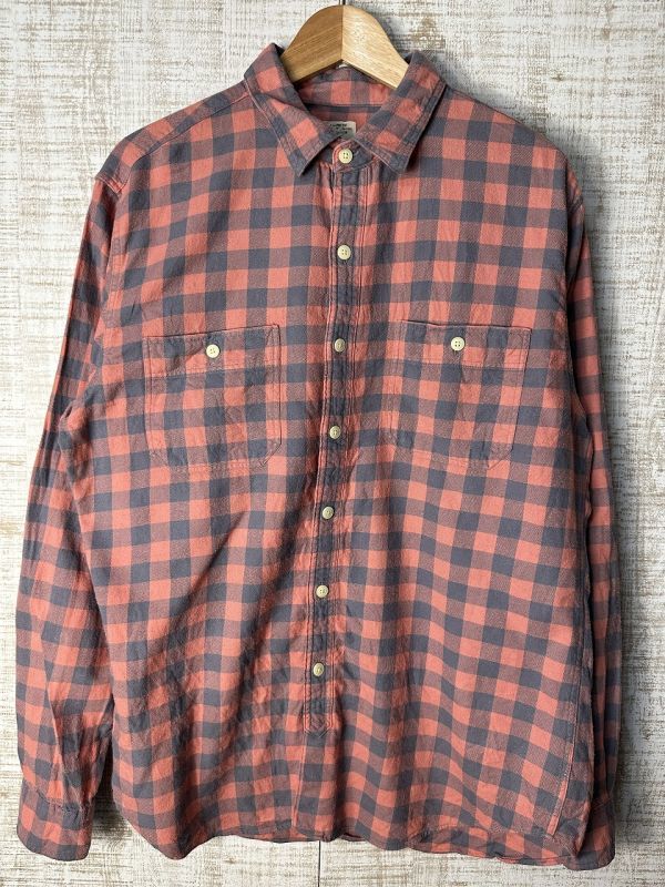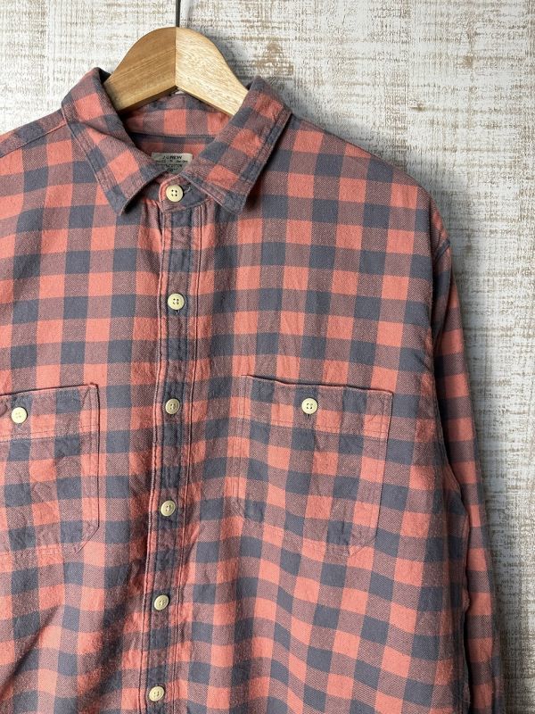 ●US USED J.CREW Jクルー ジェイクルー チェック柄 ブロックチェック ピンクグレー【L】コットン