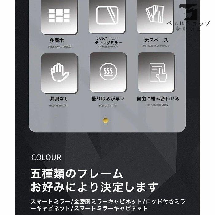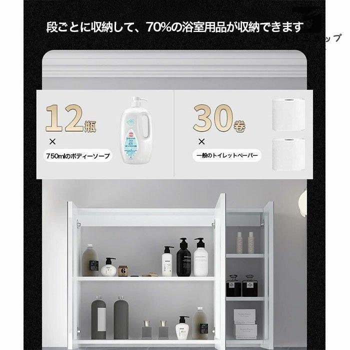 ★多機能ミラーキャビネット:LED鏡、 曇り止め、収納、時間表示