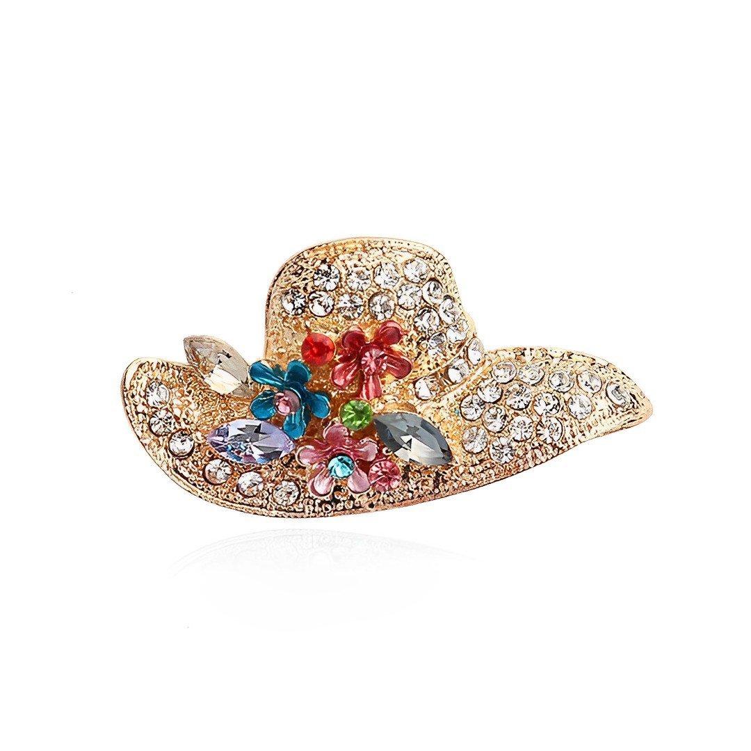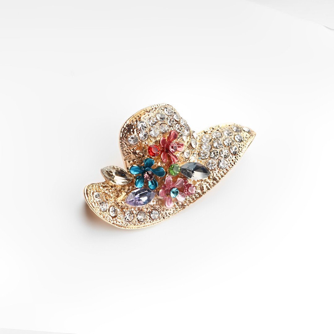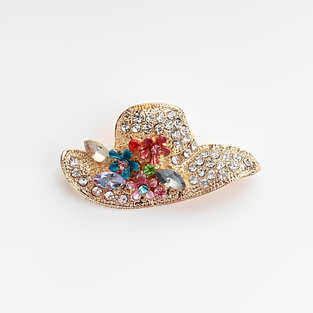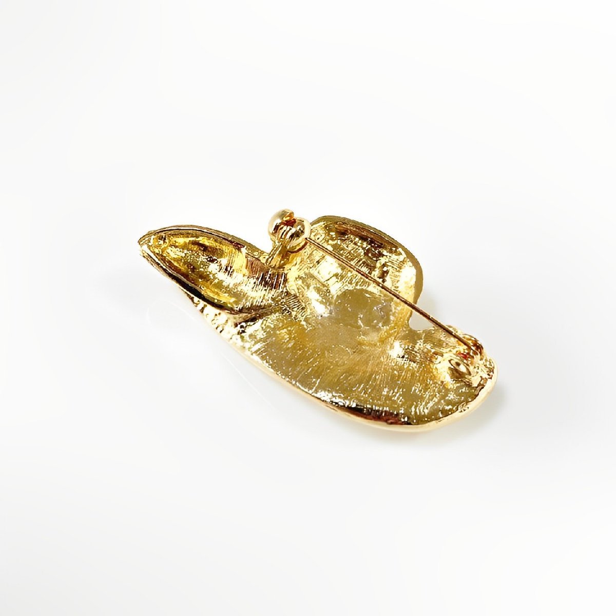 麦わら帽子 キラキラ フラワーブローチ/ゴールド