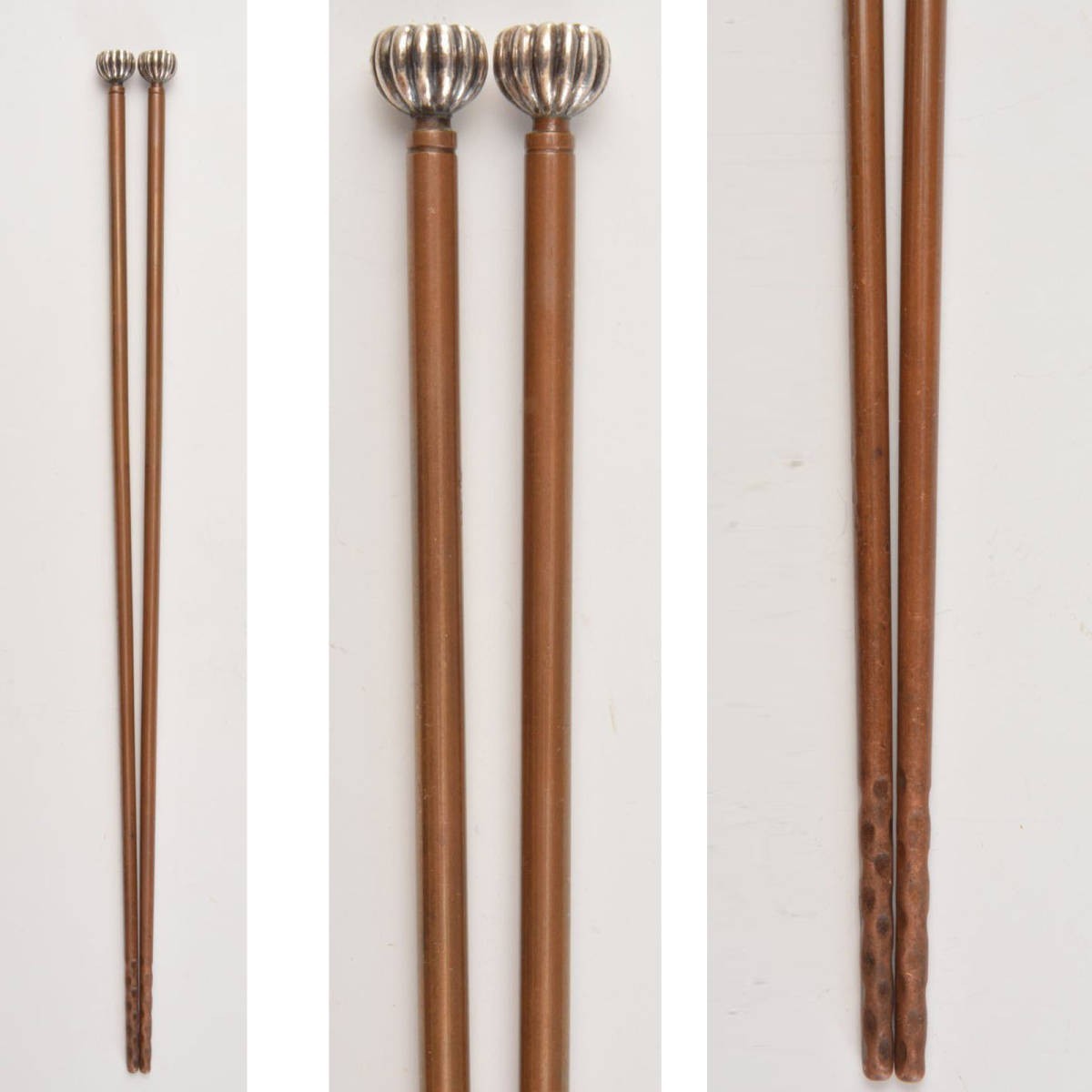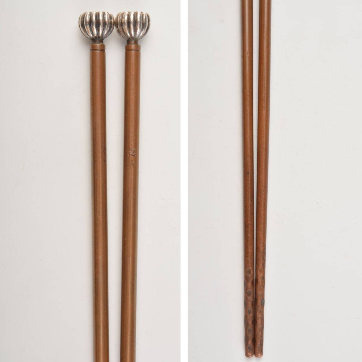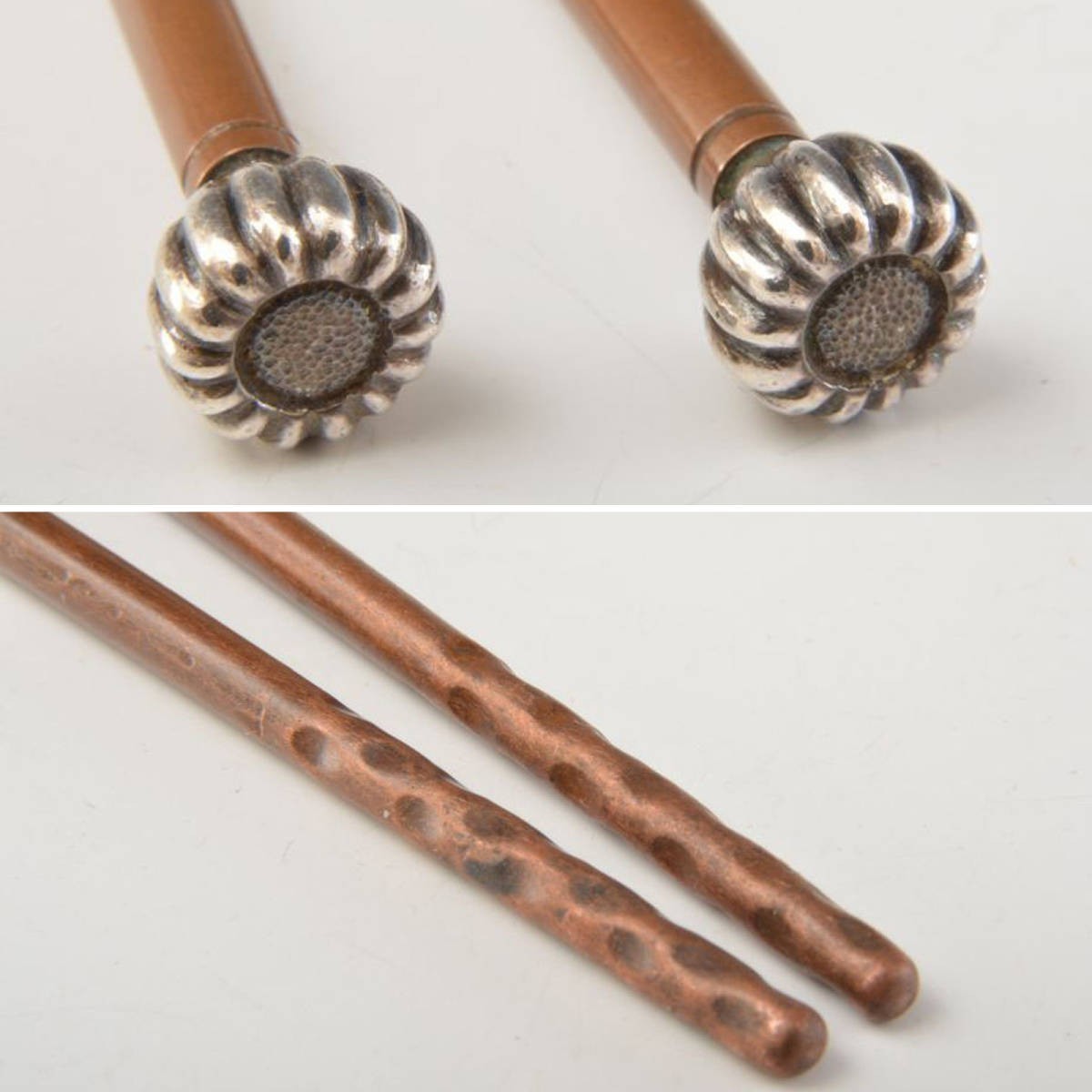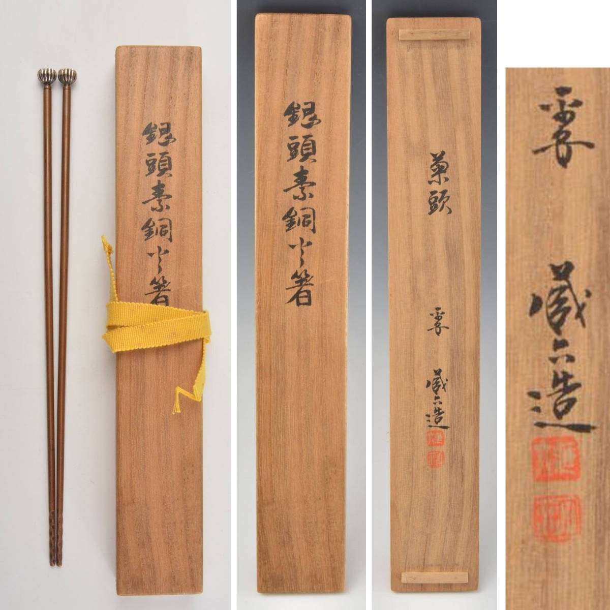 T02741 四世秦蔵六 銀頭素銅火箸 菊頭 約87g:真作