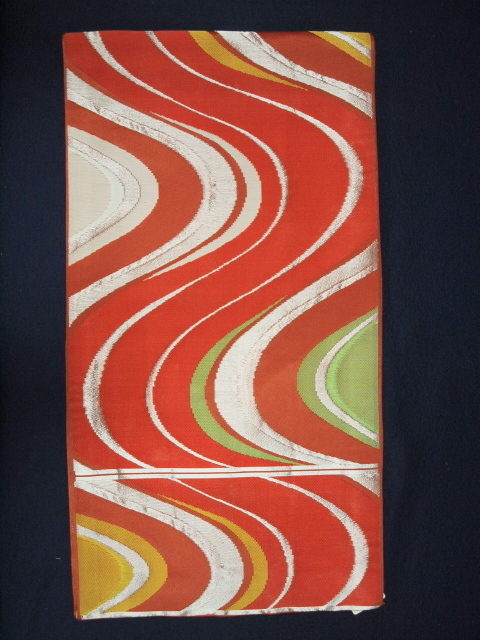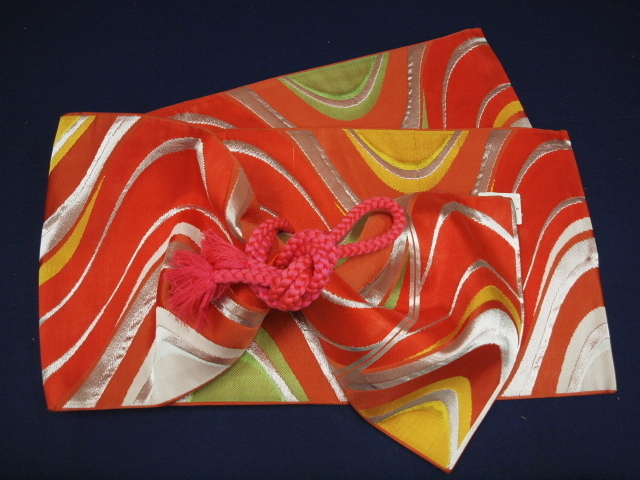 貸衣装処分品 0120 七五三 美品 七歳祝い袋帯 オレンジ地 流水柄【中古】(レターパック不可)