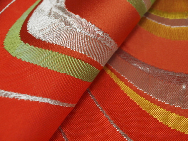 オレンジ地に流水柄がお着物を引き立てます