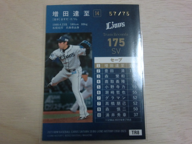 BBM 2023 球団記録 増田達至 75枚限定 ホロPP版 埼玉西武ライオンズヒストリー1950-2023 ベースボールカード