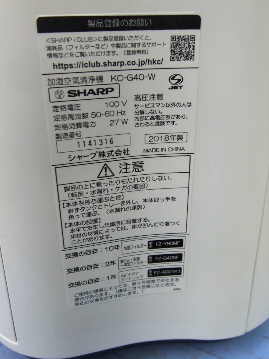 | シャープ加湿空気清浄機KC-G40‐W空清18畳まで、加湿11畳まで 2018年製 幅399奥行230高さ613mm 本体のみあり。 全体的に擦り傷あり。上部の一部にえぐれあり。 また、内部や内部パーツに水アカや汚れ残りあり。 動作確認済みです。 中古品です。神経質な方は入札をお控えください 発送は、佐川急便もしくはヤマト運輸宅配便にてお届けとなります 配送会社の指定は出来ないのでご了承ください 受取後はノークレーム、ノーリターンとなります また、落札後のキャンセルは落札代金の20%を申し受けます 最後までお読みになりご納得の上、ご入札ください | |||
