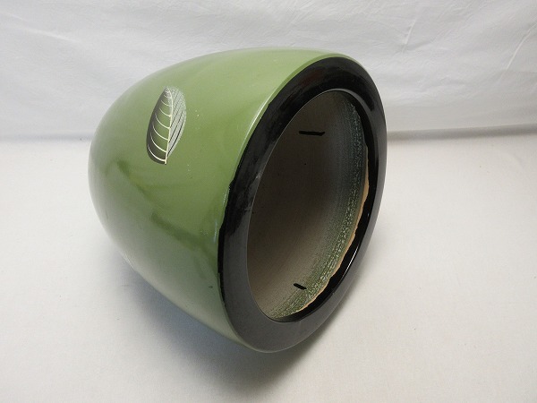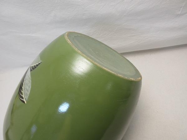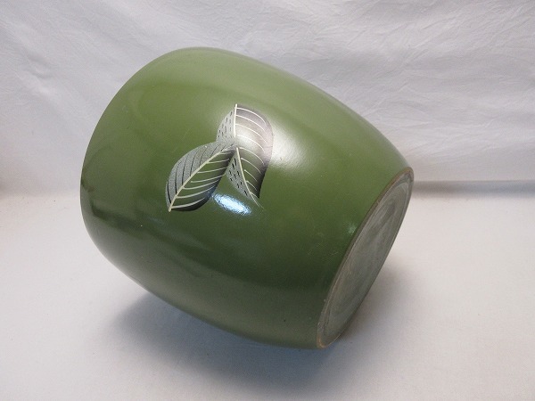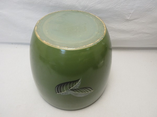 茶道具 陶器 火鉢 手あぶり 葉色絵です。