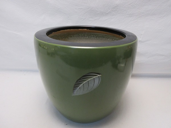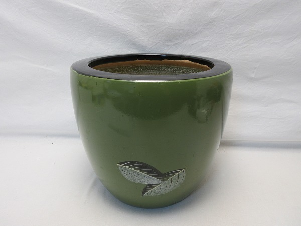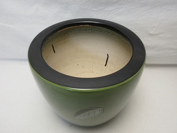 I07745 【 美品 茶道具 陶器 火鉢 手あぶり 葉色絵 箱無 】 検) 灰道具 古民具 囲炉裏 置物 インテリア 民芸品 和風 和家具 火道具 ⅲ