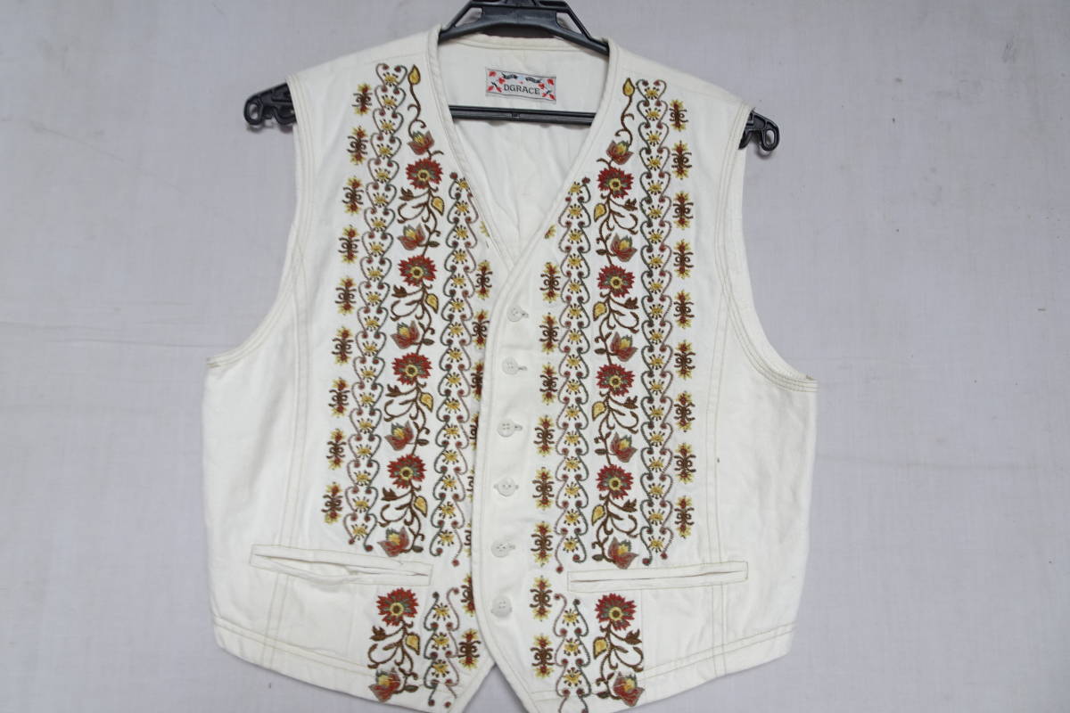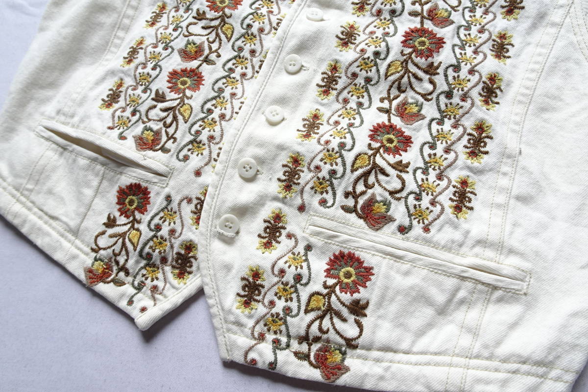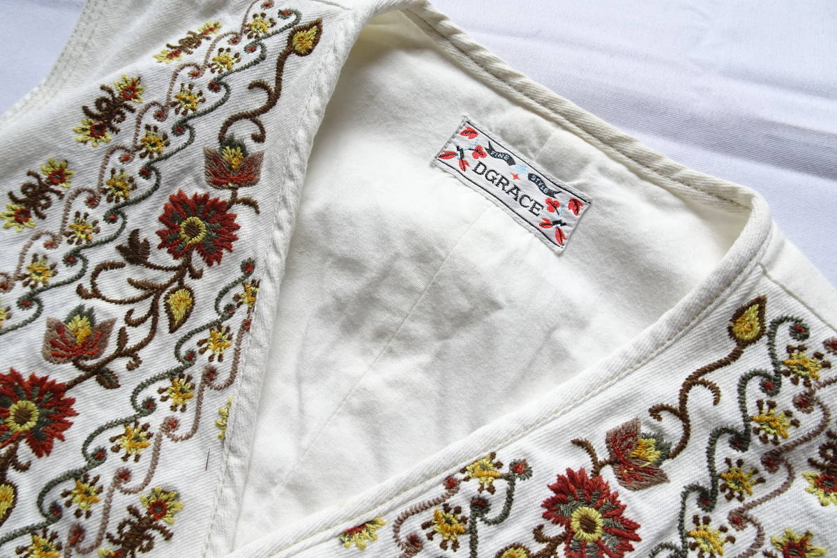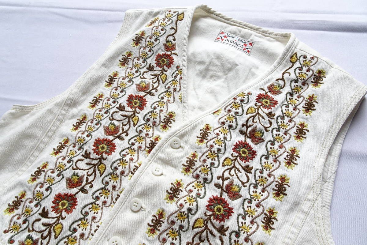DGRACE/ディグレース/ベスト/ジレ/しっかりめ生地/チロリアン柄ししゅう/後腰ベルト/カントリーテイスト/オフホワイト/白(9/22R5)