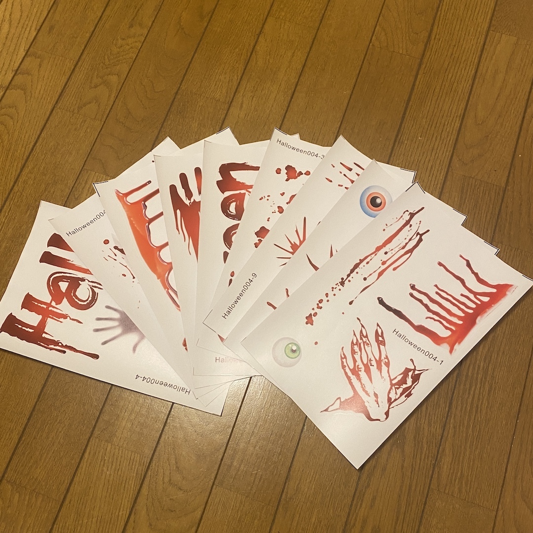 ★ ホラーチックなステッカーが登場します!真っ赤な鮮血の手形や血しぶきなど、貼るだけで簡単に演出できます。