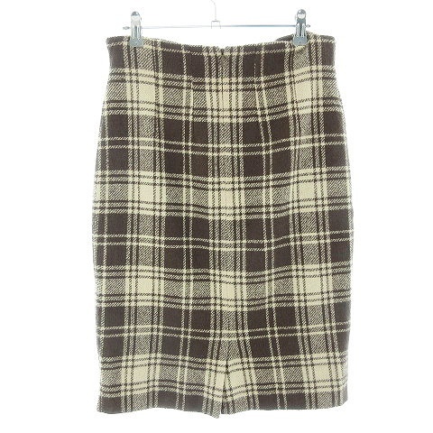 セリーヌ CELINE タイトスカート ひざ丈 ミモレ丈 バックファスナー 厚手 チェック 36 茶 ベージュ ブラウン ボトムス /TYM レディース