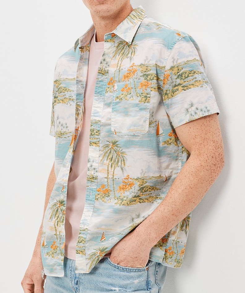 AE トロピカル ボタンアップ リゾートシャツ