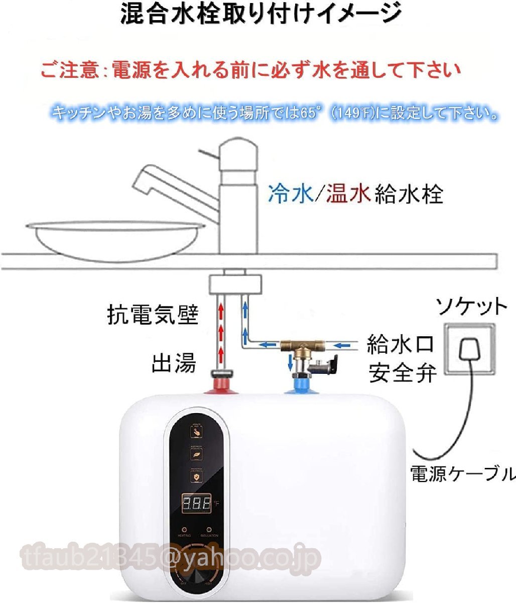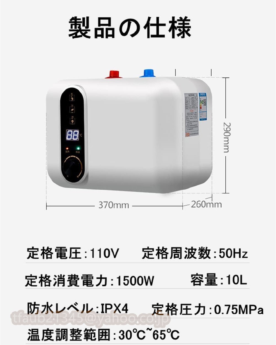 電気温水器 110V/1500W 小型電気温水器 30℃~65℃調節可 電気温水ヒーター 10L 大容量 電気給湯器