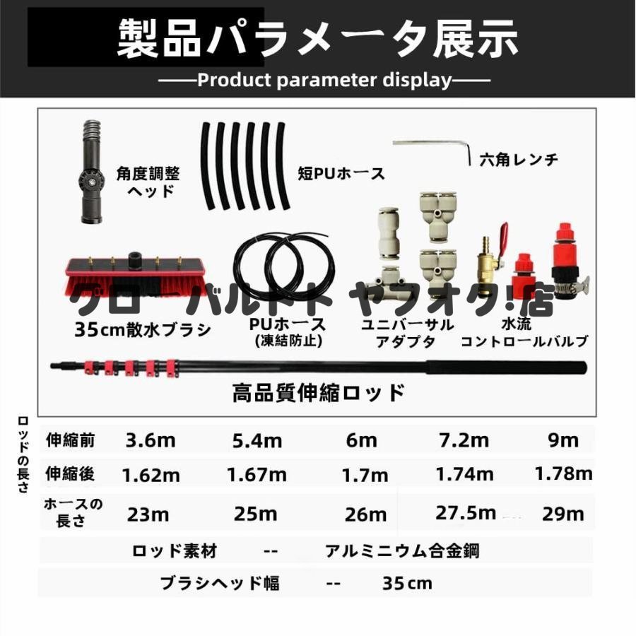 美品 高所掃除ブラシ 散水ブラシ 1.62m-3.6m 給水伸縮ブラシ 外壁掃除 35Cmブラシヘッド 窓ガラス/壁掃除 業務用 取り外しが簡単 S962