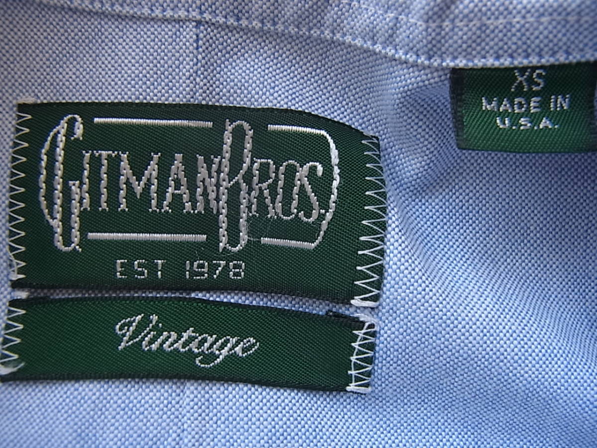 GITMAN Vintage ギッドマン ブラザーズ ヴィンテージ コットンオックス素材 ボタンダウンシャツ サイズ XS  MADE IN USA  ブルー