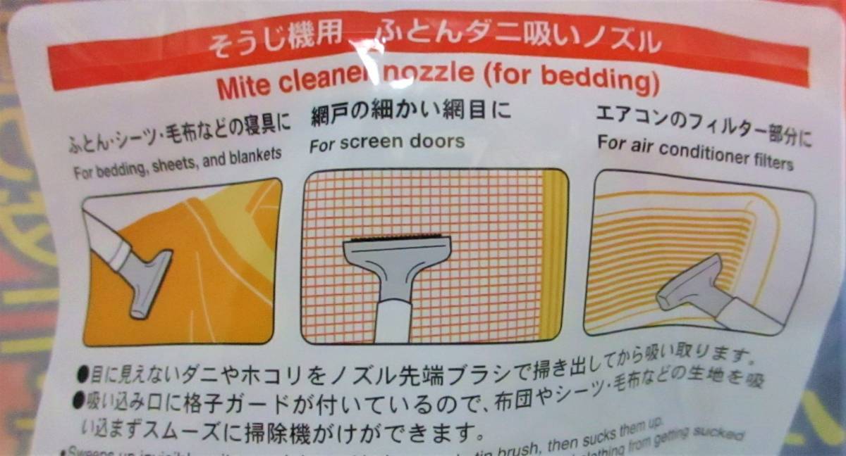 日本製。目に見えないダニやホコリをノズル先端ブラシで掃き出してから吸い取ります。
