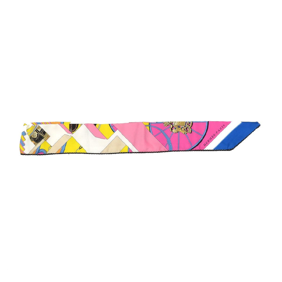 未使用 エルメス ツイリーポケット サイドステッチ シルク ピンク ブルー ブラック 0042 HERMES