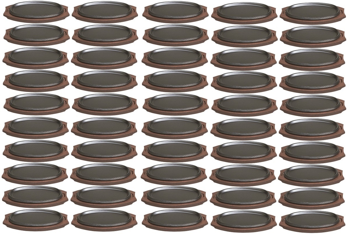 ☆ステーキ皿小判型ライン 50個(皿約270X180mm)木台付日本製新品