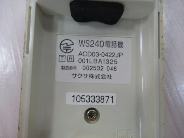 | ●内容 ◇ WS240(W) ×1 SAXA サクサ 漢字表示付きアナログコードレス電話機 動作確認済みです。 バッテリーは消耗品のため、現状渡しになります。 バッテリーの残量は保証対象外になります。 全体的に日焼けがあります(写真より日焼けがあります) ●商品の状態ランク 【 キ 】 [ア] 新品 [イ] 未使用品 [ウ] 美品 [エ] キレイ (ほぼ美品) [オ] キレイメ (欠点がわずか) [カ] 普通 [キ] 欠点がやや気になる [ク] 欠点がかなり気になる [ケ] 使用感最大 [コ] ジャンク ●補足説明 本商品は中古品となります。 写真では分かりにくいキズ・汚れ・欠けなどの使用感があります。 予めご理解・ご了承頂きますようお願いいたします。 【中古品となりますので以下の点を予めご了承ください】 本商品は中古品となります。 新品同様の外観・使用感をお求めの場合はご入札をお控えください。 中古品の特性・性質をご理解頂き、ご入札頂くようお願いいたします。 写真をご覧いただく環境によって機器の色味に若干の差が 出ます事を予めご了承ください。 中古品となりますので経年変化で日焼けの色味が強くなる場合が ありますので予めご了承ください。 写真に写るものが全てとなります。付属品は写真にてご確認ください。 お手数ですが一番最後までお読みいただきご理解いただいた上でご入札ください。 ●出品担当者 μ2023/08/07 市村 |