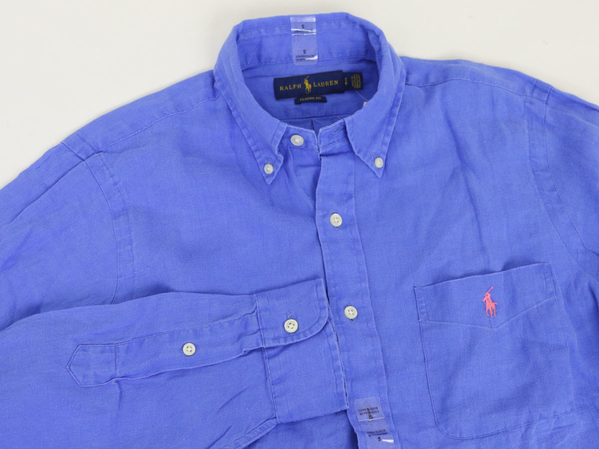 アクセス頂きありがとうございます。 こちらはアメリカ買付新品アウトレット ラルフローレンRalph Laurenの長袖ボタンダウンシャツ。 程よい余裕のあるシルエットの、CLASSIC FIT。 独特の質感の涼しいリネン100%。 左胸にはポケット、ワンポイントのポニー刺繍入り、 ラルフローレン定番のボタンダウンの長袖シャツです。 MADE IN PHILIPPINES 100% LINEN EXCLUSIVE OF DECORATION (US) S 着丈 (cm)77.5 身幅 (cm)53 肩幅 (cm) 44 そで丈 (cm) 63 *着丈:背面襟元中央~裾まで直線、身幅: 脇下~脇下まで直線、 肩幅: 肩先~肩先まで直線、袖丈:肩先~袖口まで直線、 裄丈:背面襟元中央~肩を通って袖口まで *サイズは慎重に計測しておりますが、計測方法や商品の材質、 個体差で誤差が出ることがございますのでご了承ください。 アウトレット理由 右腕に傷があります。 0103784 その他、多数出品しております。 こちらもご覧下さい |