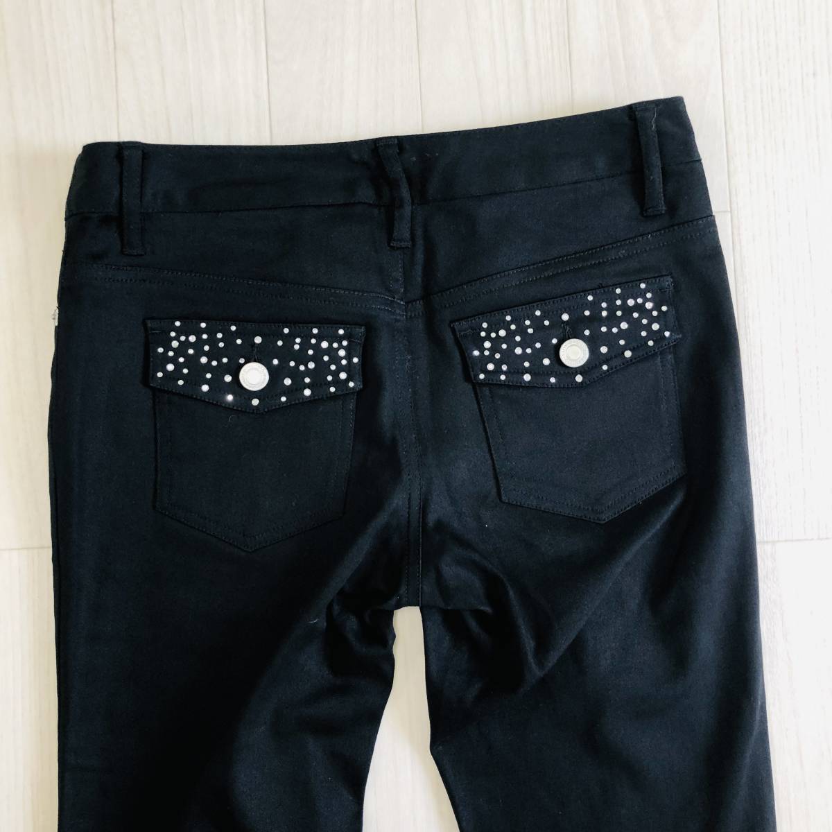 AS0251 美品 jouer aux echecs レディース ボトムス パンツ ラインストーン ビジュー ブラック 黒 カジュアル オールシーズン キラキラ