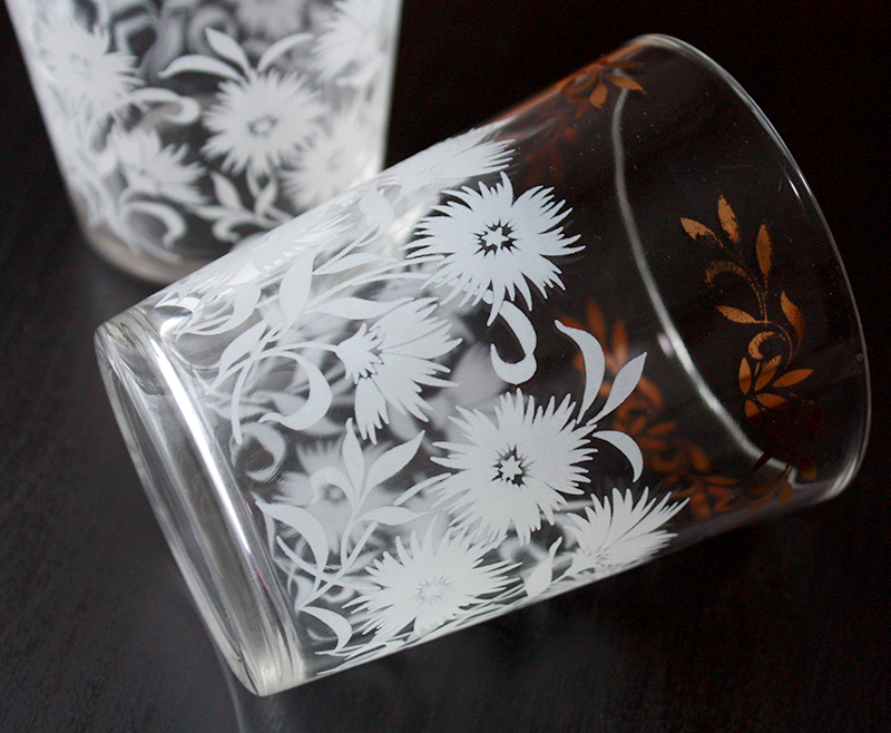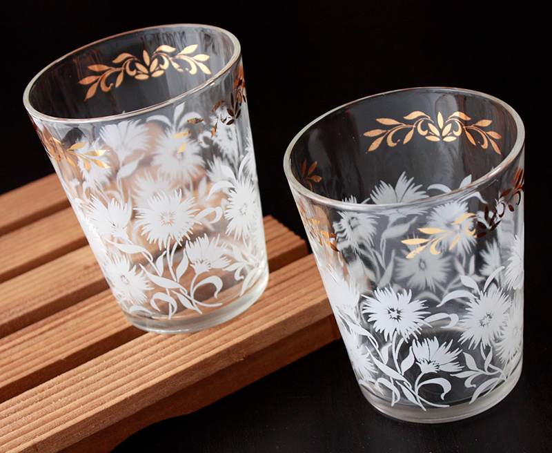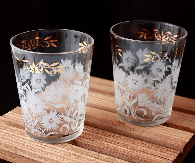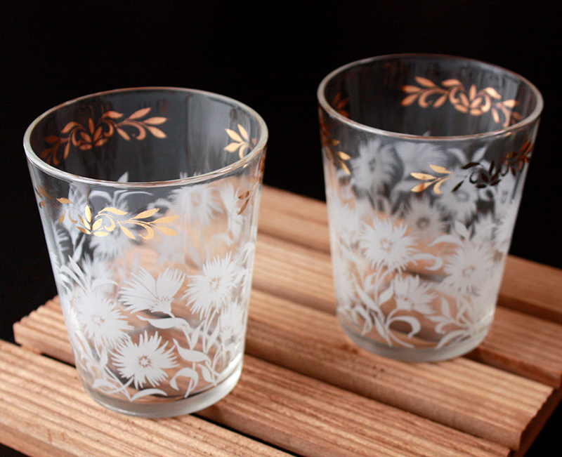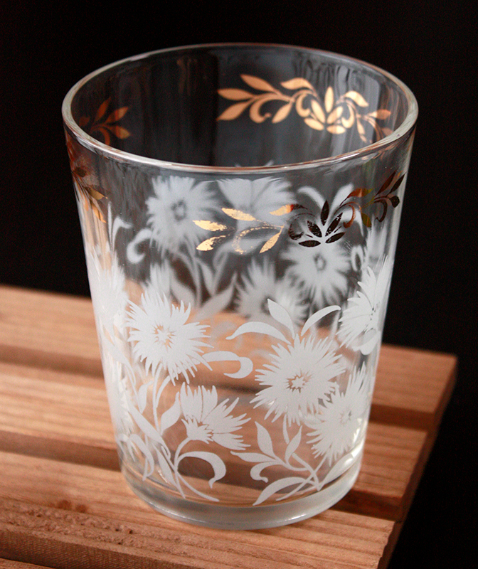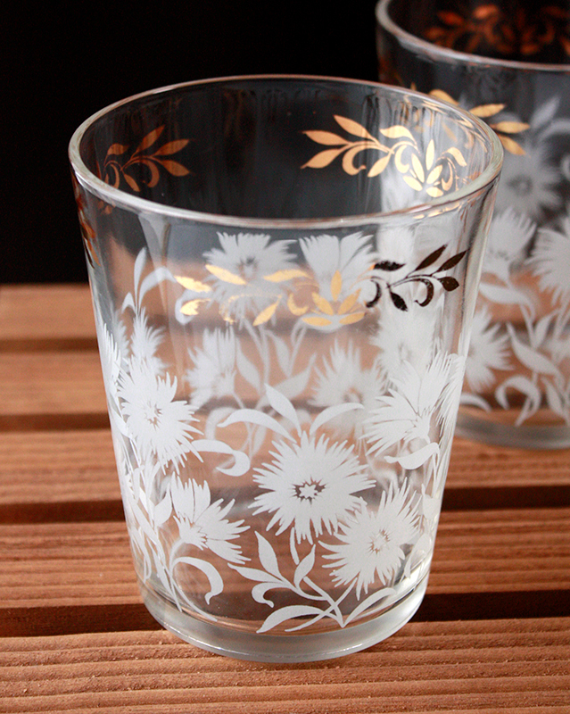 ヘーゼルアトラス社★WHITE ASTER タンブラー★ホワイトアスター 花 レトロ ビンテージ アメリカンヴィンテージ モールガラス HAZEL ATLAS