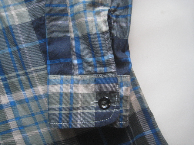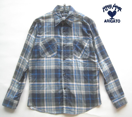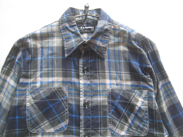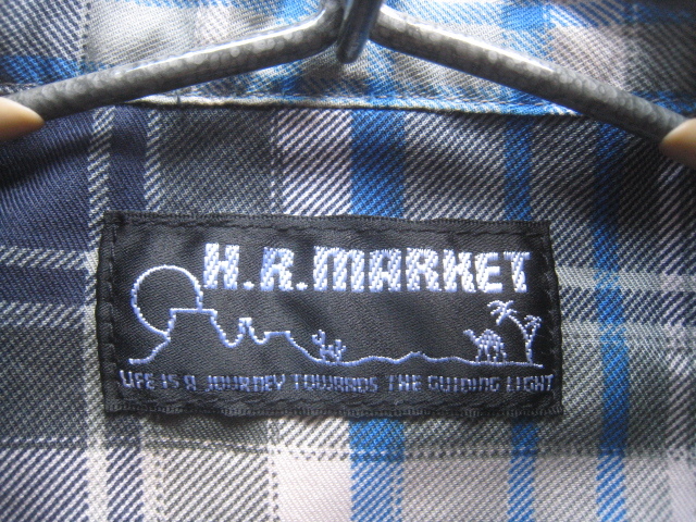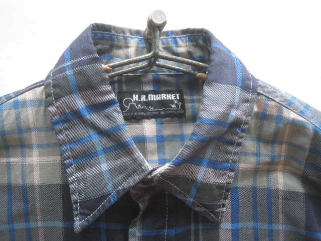 美品!!ハリウッドランチマーケット H.R.MARKET*チェック柄ダブルポケットシャツ 1 実寸S 紺×白×カーキ×水色 ハリラン