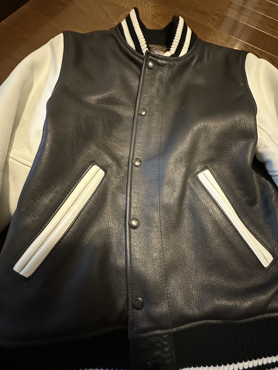 バンソンのレザーの別注スタジャンはかなり珍しいです。