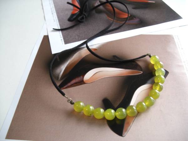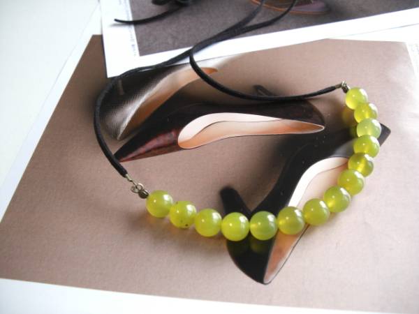 小粋にセレクト・・シリーズです♪シックなオリーブジェイドのネックレスです♪神秘的なオリーブジェイドの丸玉がロマンチックな表情です♪黒のスエード紐を合わせました♪お好きな長さで結んでいただけます♪又チェーンにも変更出来ます♪10ミリの丸玉のジェイドは長さ90センチ位で調節自由です♪お揃いのネックレスやリングやピアスも出品しています♪シンプルで飽きのこないいつまでも着けられるデザインを考えて作りました!ハンドメイドをご理解頂いてノークレーム、ノーリターンでお願いします