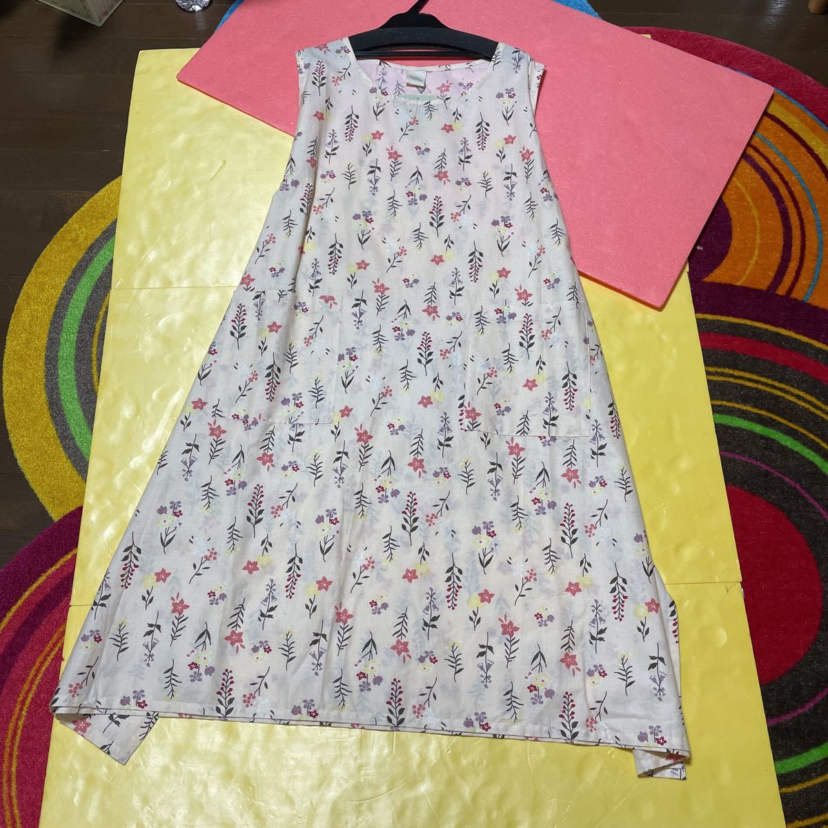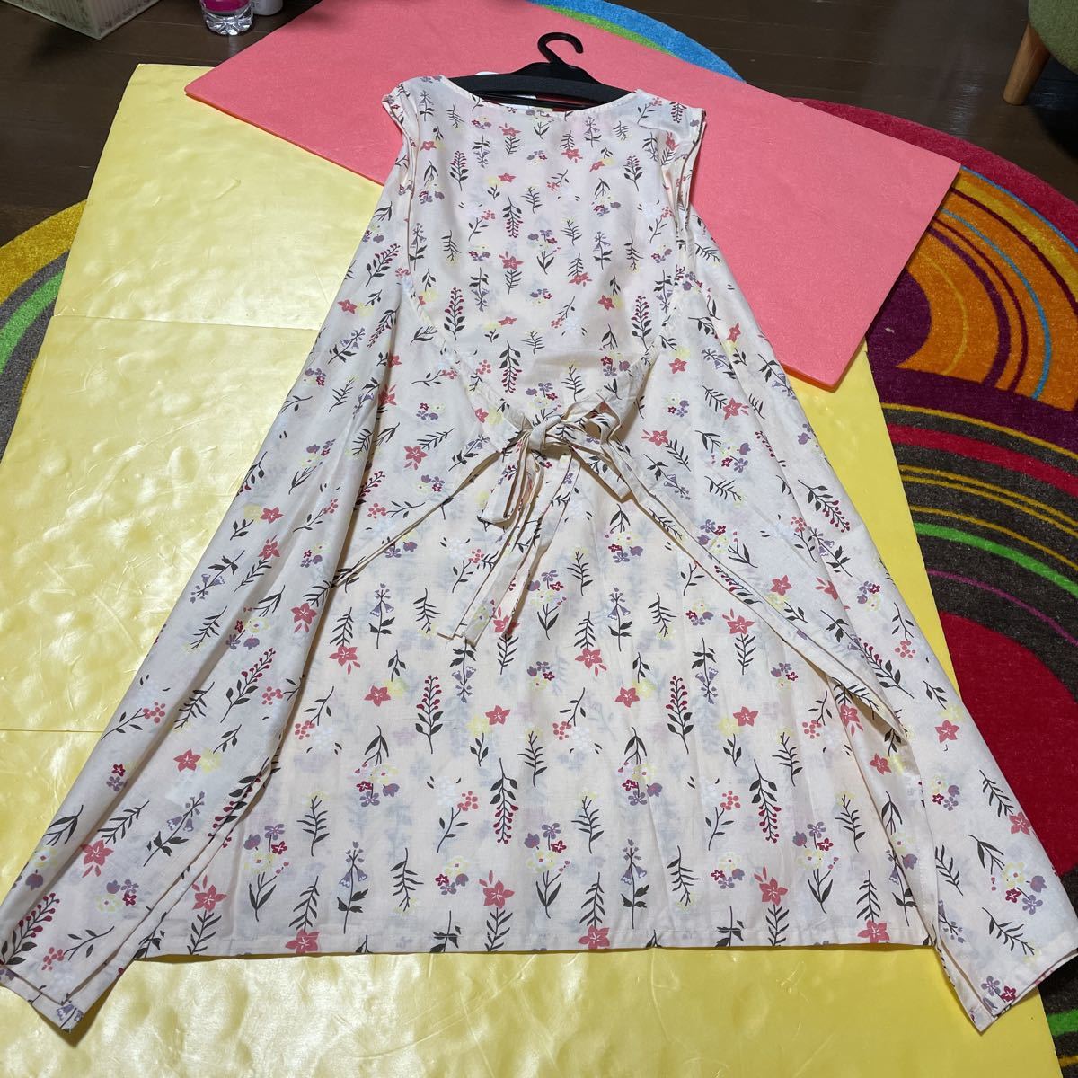 フリーサイズですが、横に広くゆったりしたサイズです、身丈約101センチ.開いた状態で片面98センチぐらいです.ベージュに近い、薄いピンク色です