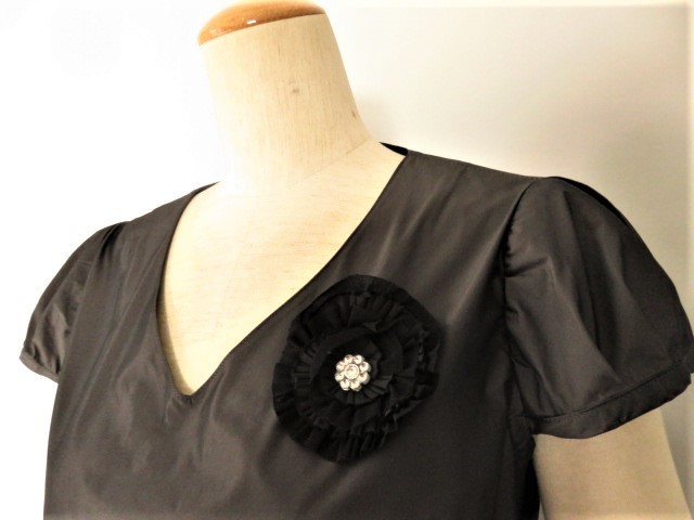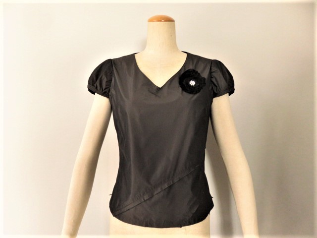 ■新品 21,000円 未使用 上質美品【 TOPTOPOLO サン・フェルメール】高級 光沢 コサージュ付き ブラウス 【38】9号 M 送料185円 w1675