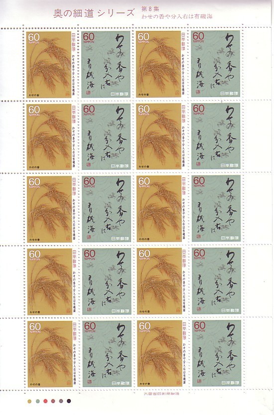 「奥の細道シリーズ 第8集」の記念切手です(60円切手X20枚)。送料は普通便140円(郵送 複数落札でも同一料金)になります。