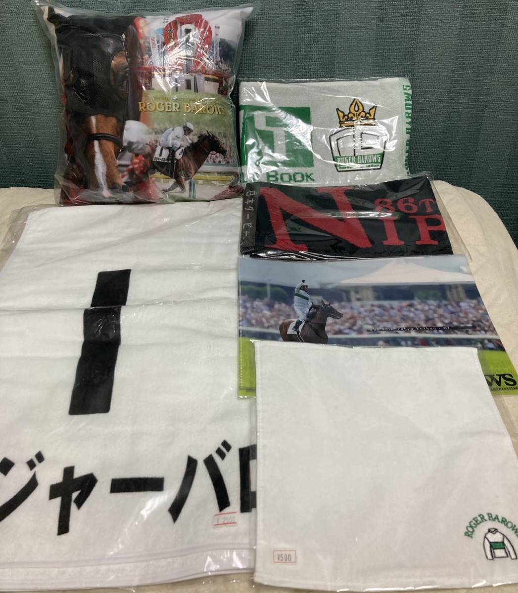 新品 未使用 未開封 ロジャーバローズ 日本ダービー ダービー馬 JRA グッズセットです。1枚目の写真が全てです。限定150しか無いクッションに大判のゼッケンタオルにマフラータオル、クリアファイル、ハンカチなど今ではレアな商品です。写真を参考にしていただきノークレームノーリターンでお願い致します。サイズが変更になった場合の請求返金は致しませんのでご了承下さい。