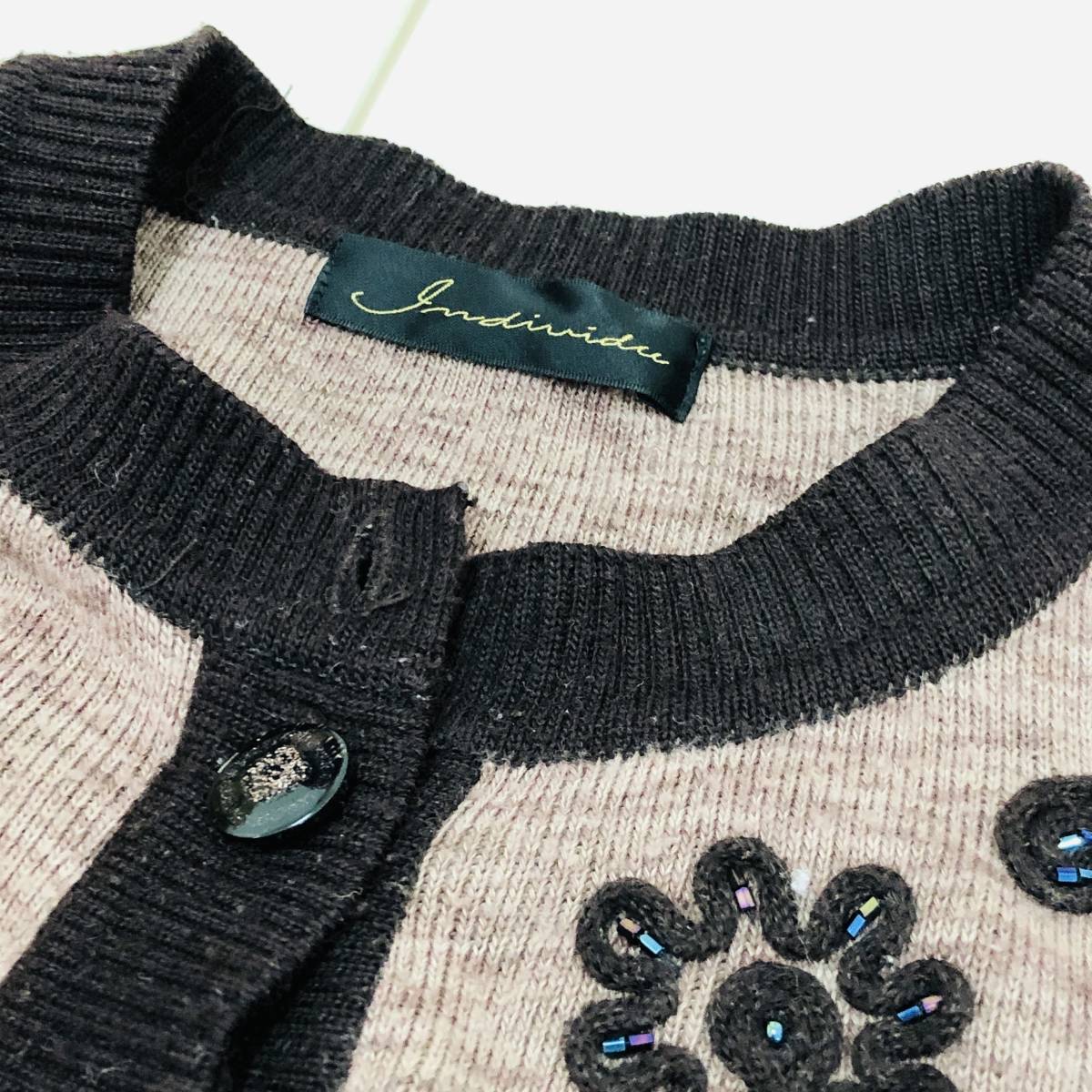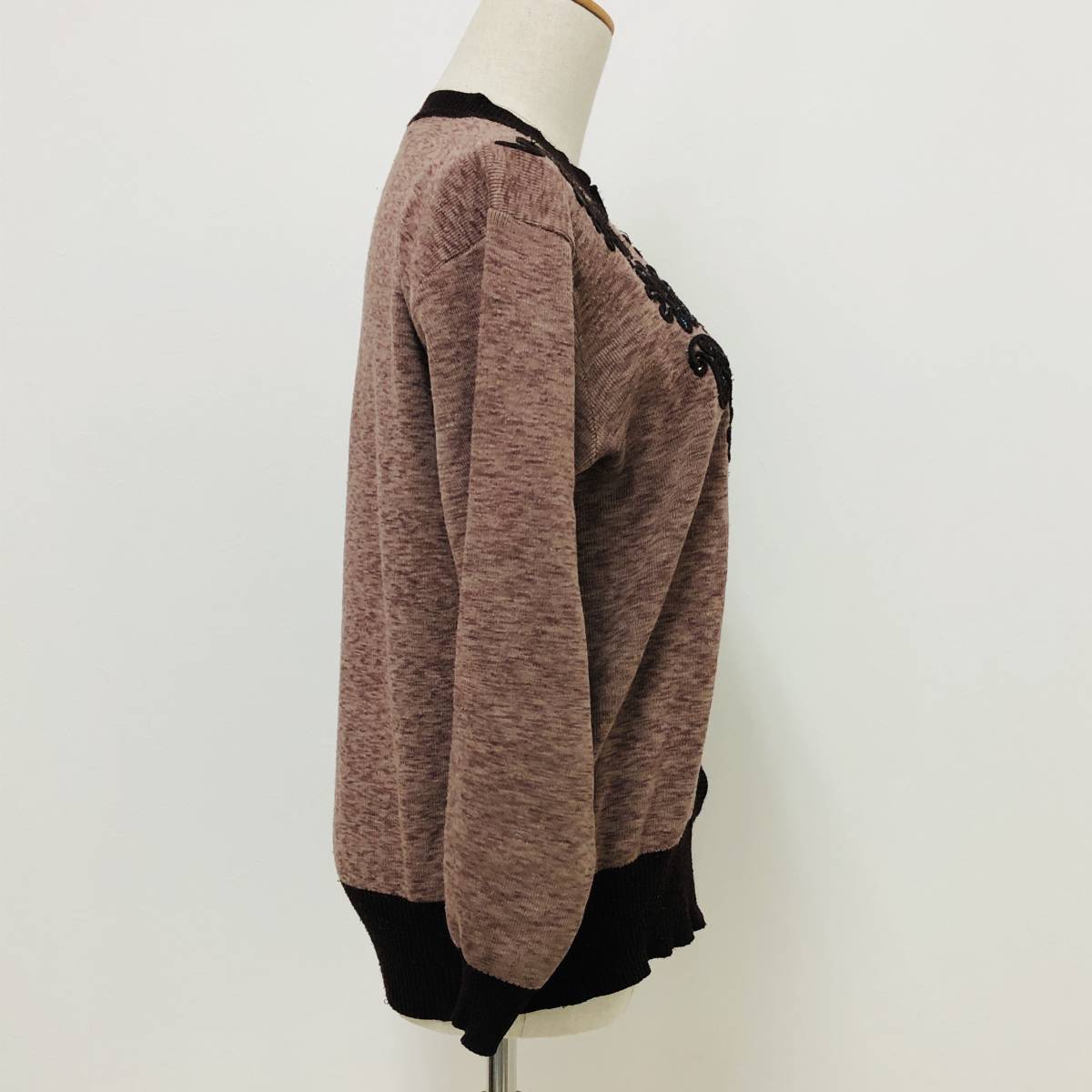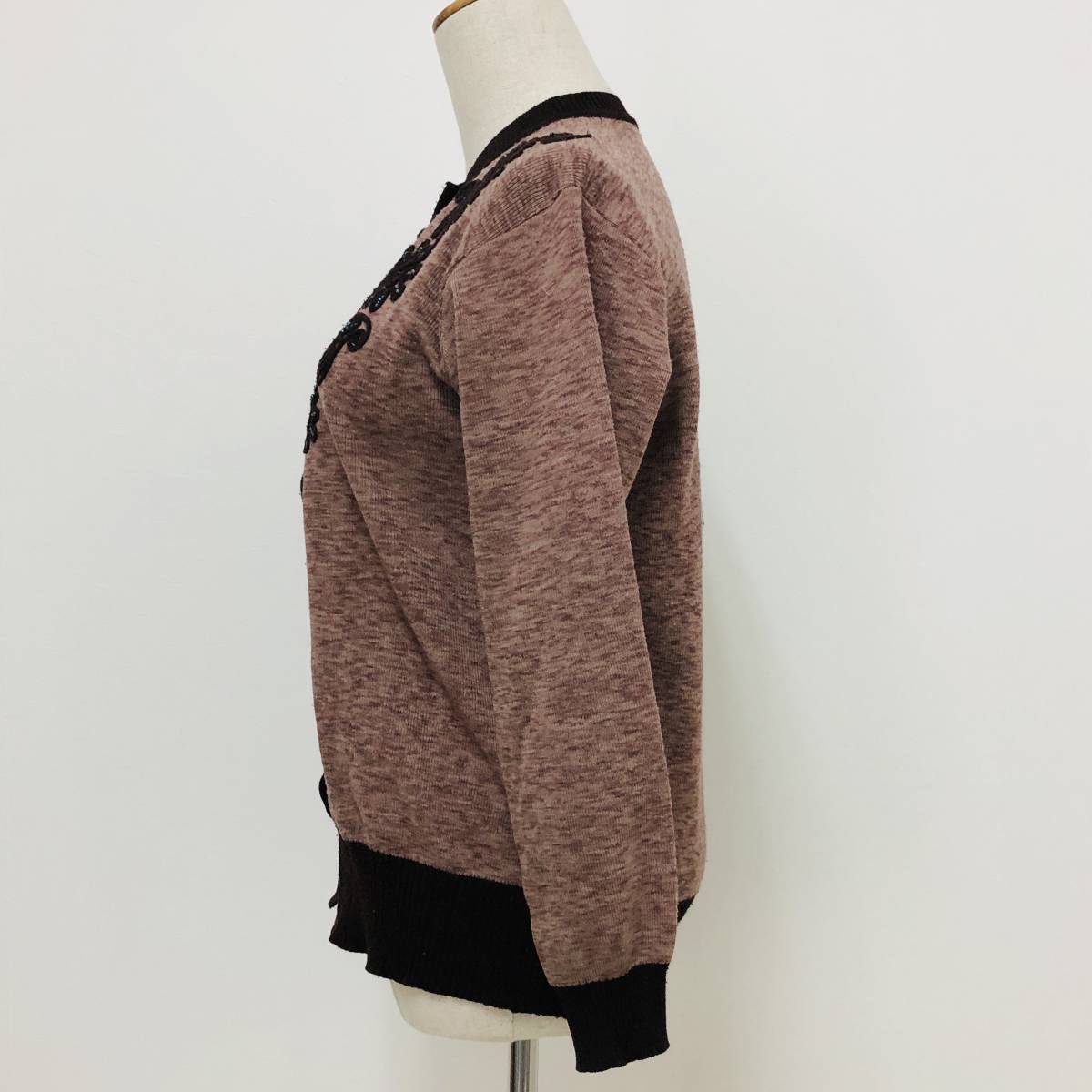k0405 カーディガン 長袖 毛混 ビーズ M-L ブラウン 花 レディース 昭和レトロ 高級感 上品 上質 おしゃれ 気品 エレガントガーリーチック