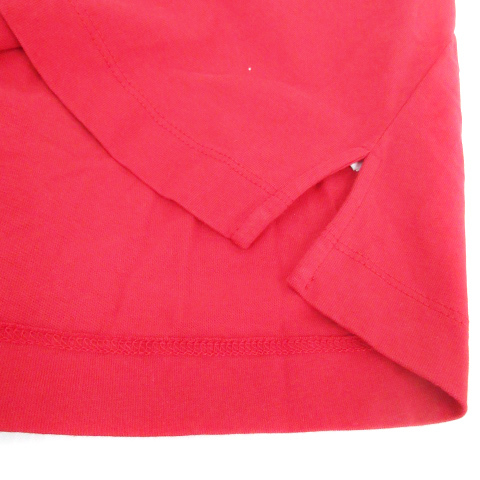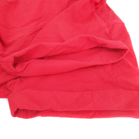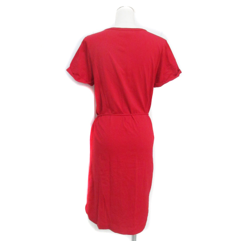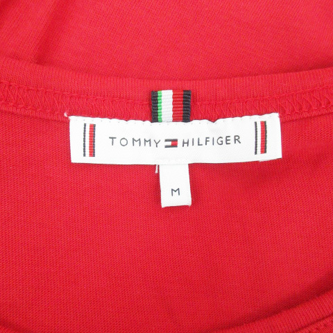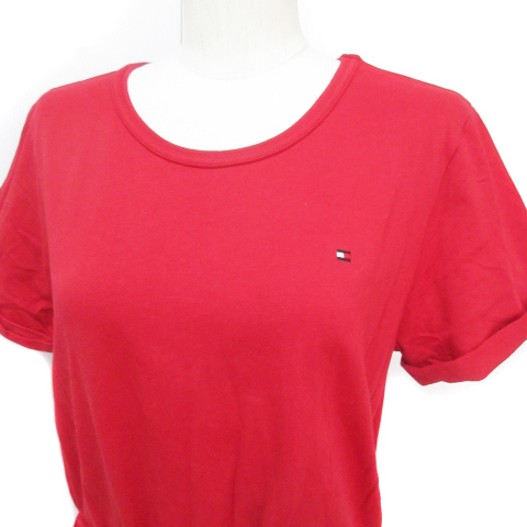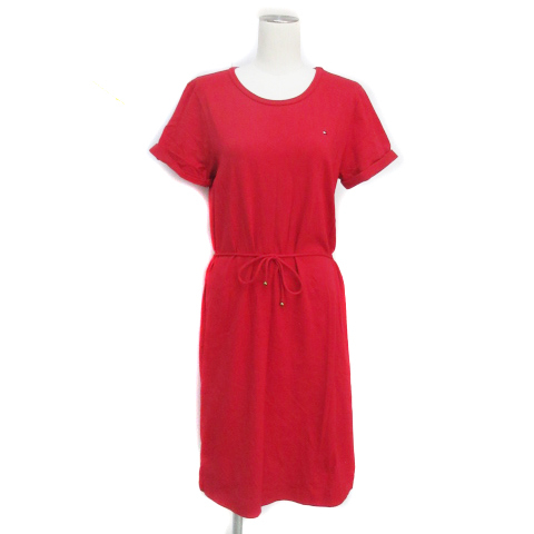 トミーヒルフィガー TOMMY HILFIGER ワンピース ミモレ丈 半袖 ラウンドネック ロゴ刺? リボン付き ロールアップ M 赤 レッド レディース