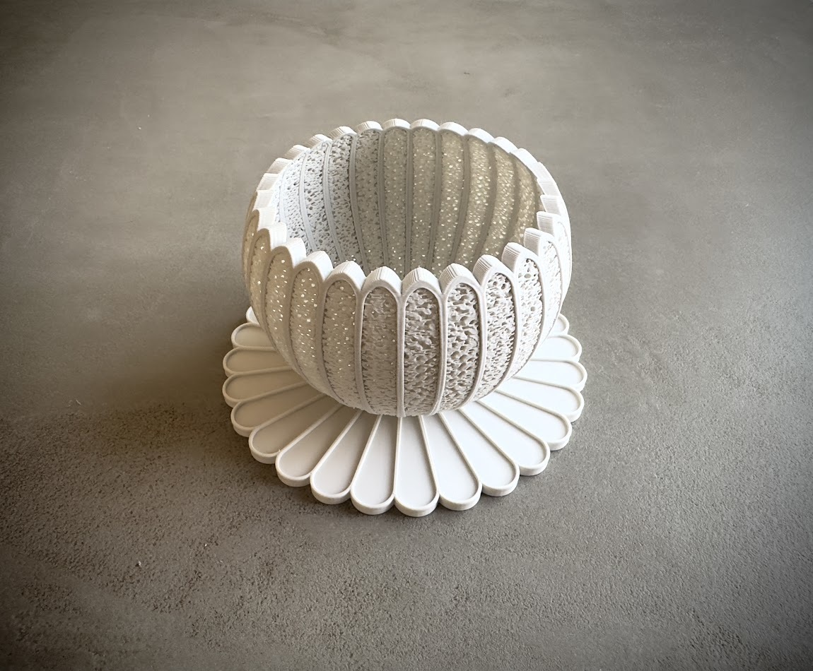 3dプリンターを使い製作した通気性のあるプラスチック製のメッシュ植木鉢 鉢受けのセットになります。