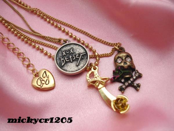 新品即決★アメリカブランド★BETSEY JOHNSON ベッツィ ジョンソン★海賊&薔薇 カットラス 三連ネックレス★送料無料