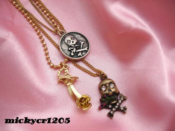 アメリカブランド BETSEY JOHNSON【ベッツィージョンソン】海賊&薔薇 カットラス 三連ネックレス(刻印付き)